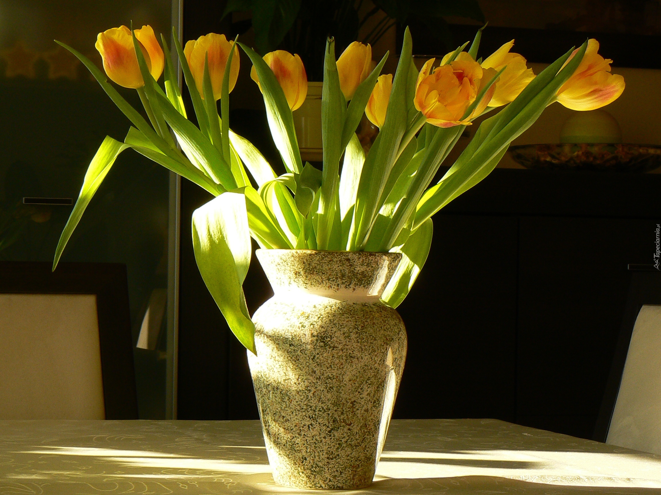 Edytor tapety: Żółte, Tulipany, Wazon