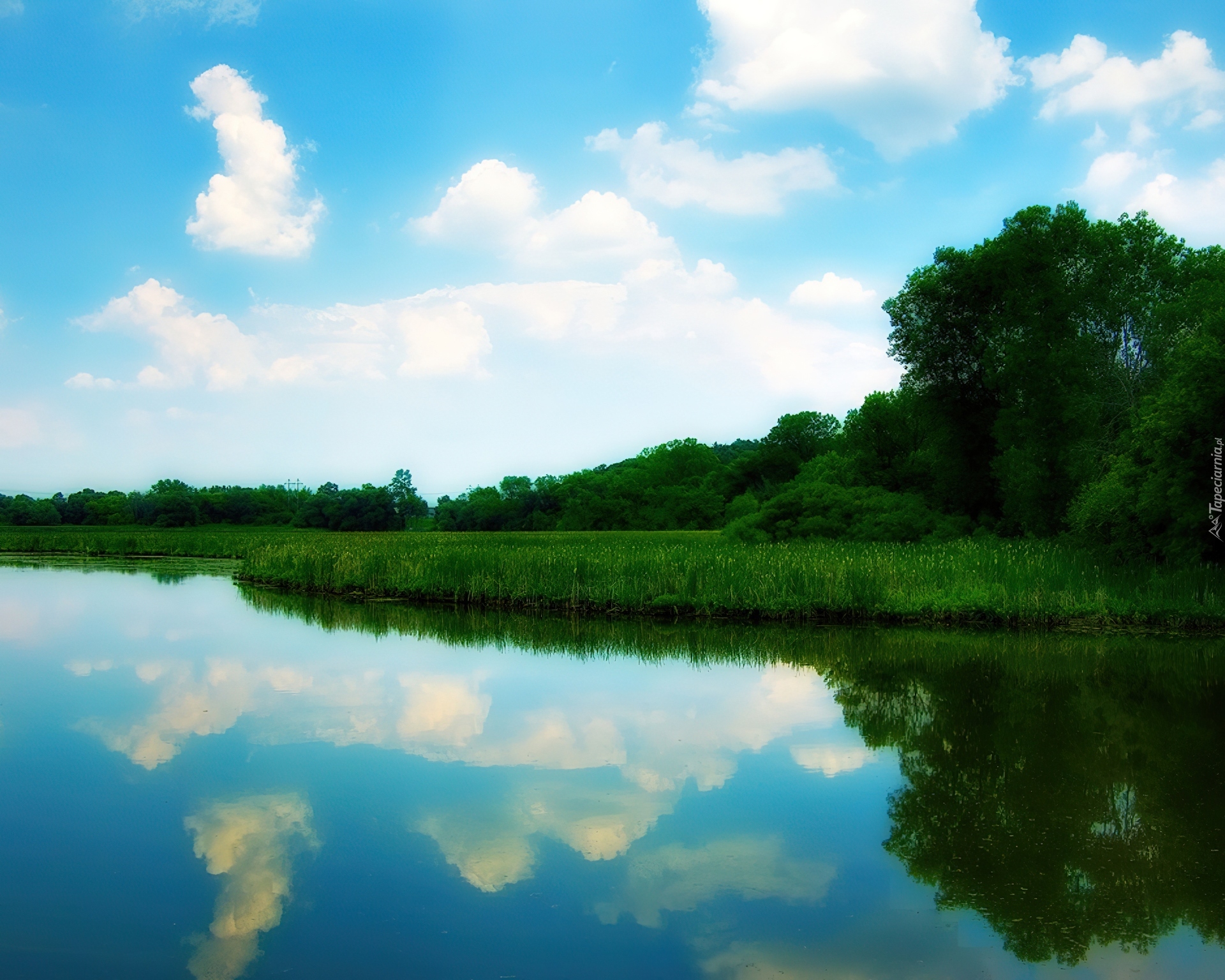 Edytor tapety: Chmury, Jezioro, Odbicie
