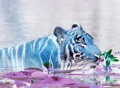Edytor tapety: Tygrys, Kwiaty, Woda