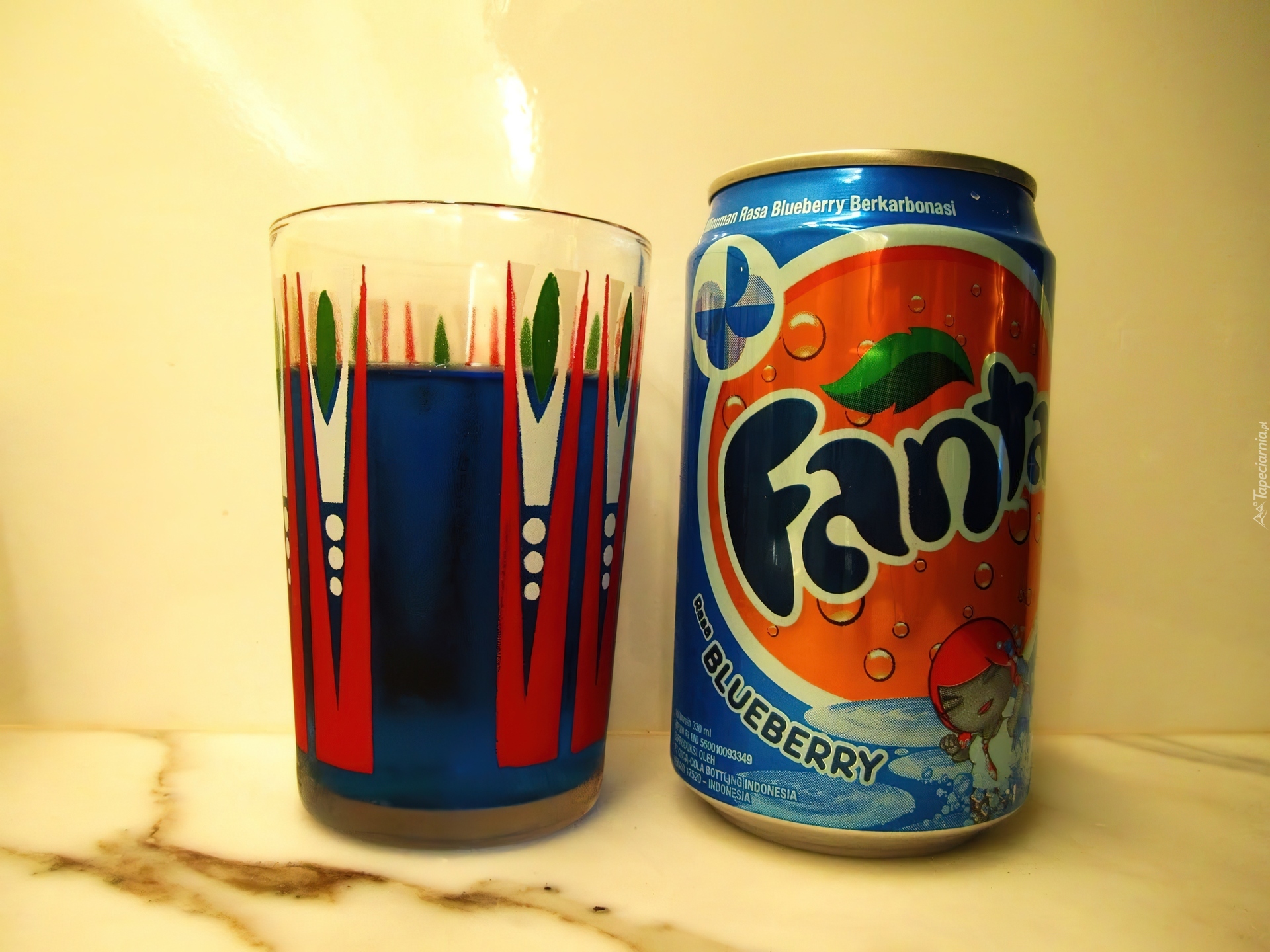 Edytor tapety: Fanta, Blueberry, Puszka, Szklanka