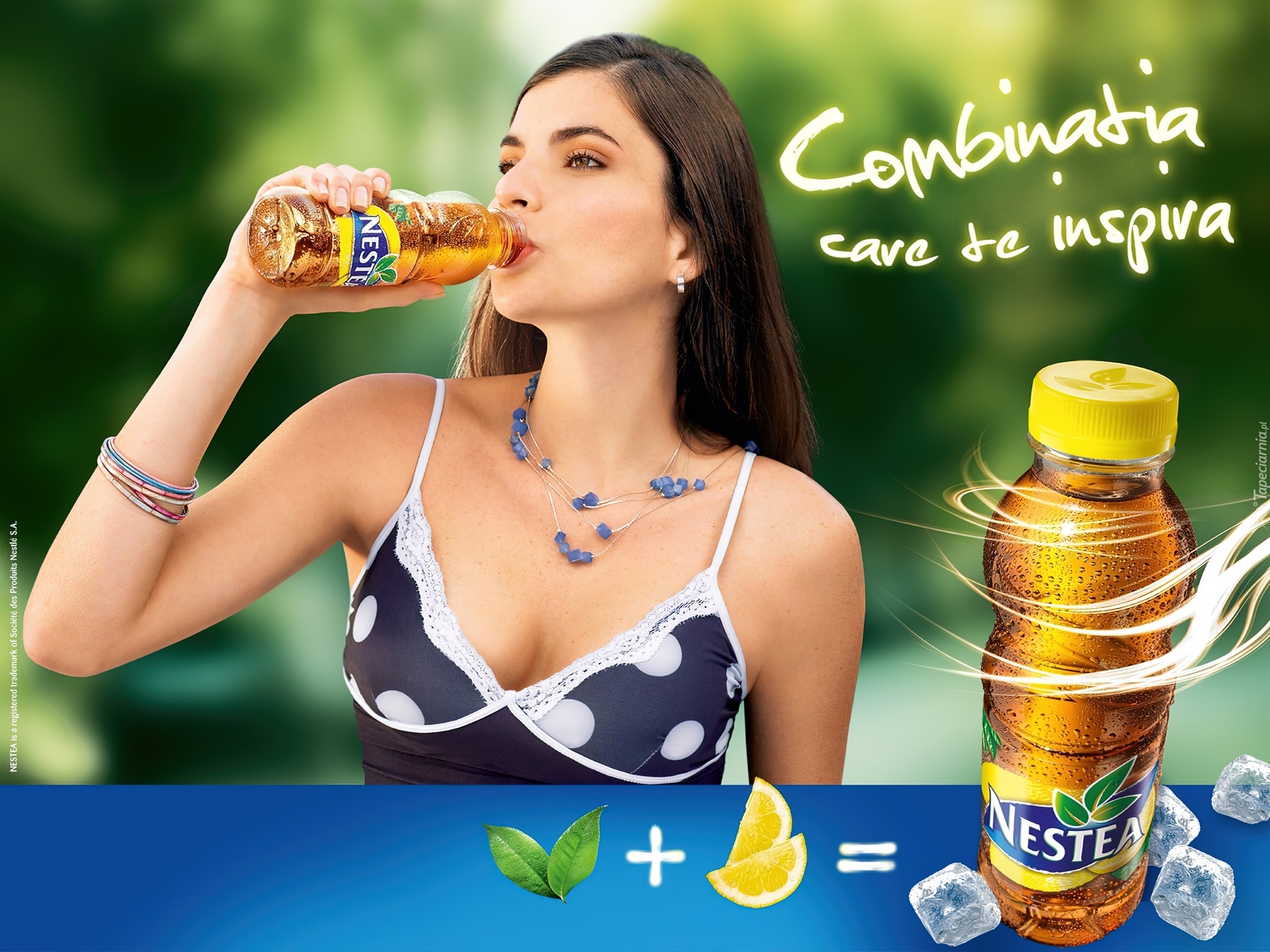 Edytor tapety: Dziewczyna, Butelka, Nestea, Lemon