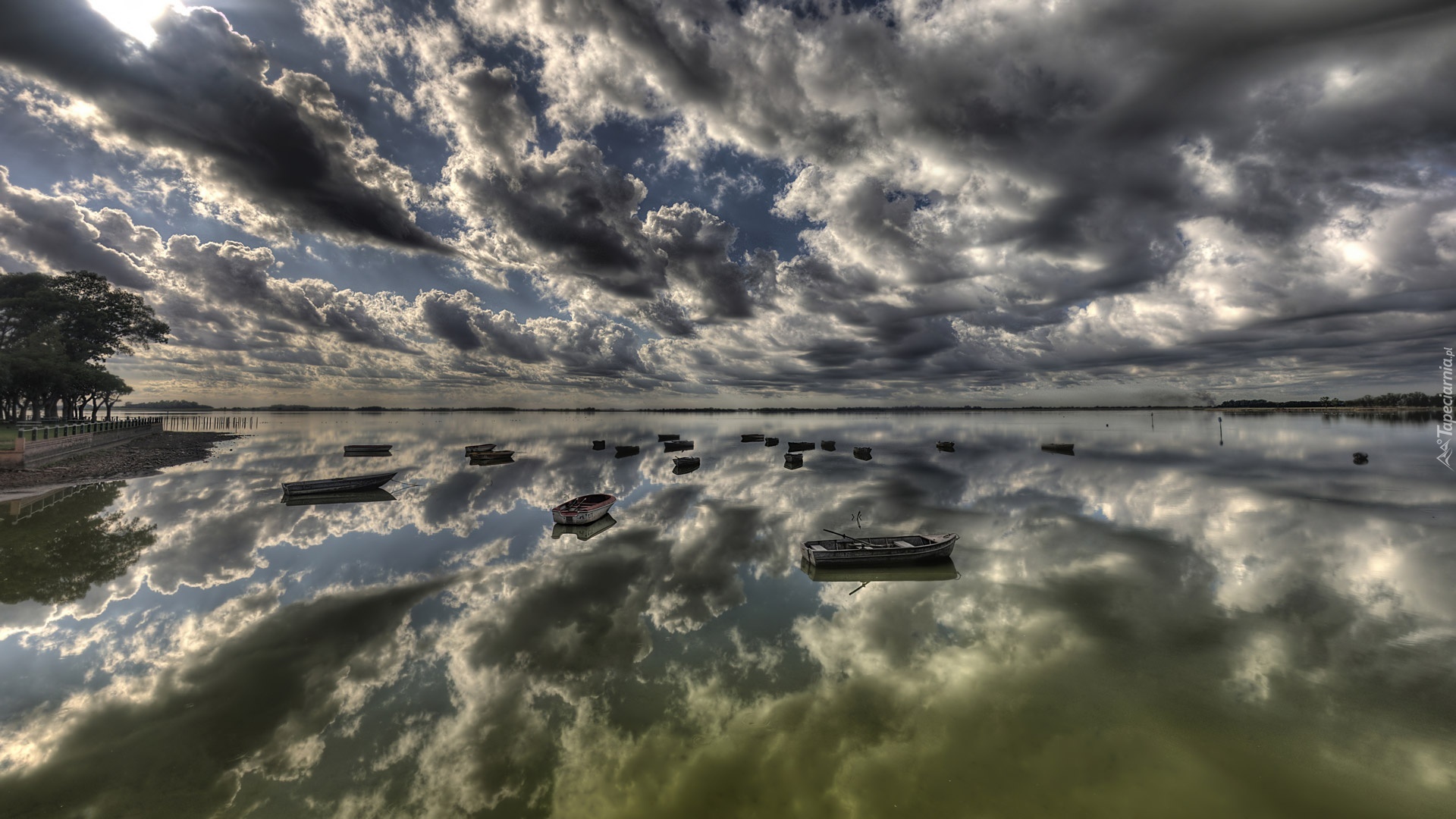 Edytor tapety: Ciemne, Chmury, Łódki