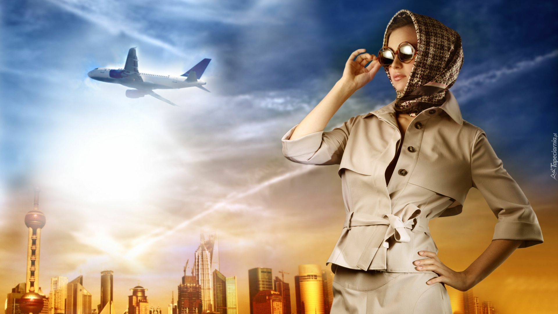 Edytor tapety: Kobieta, Samolot
