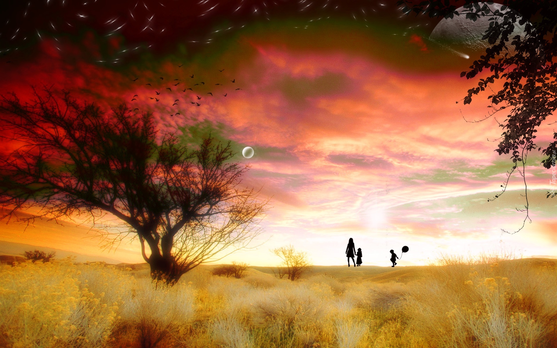 Edytor tapety: Drzewo, Rodzina, Chmury, Księżyc, Fantasy