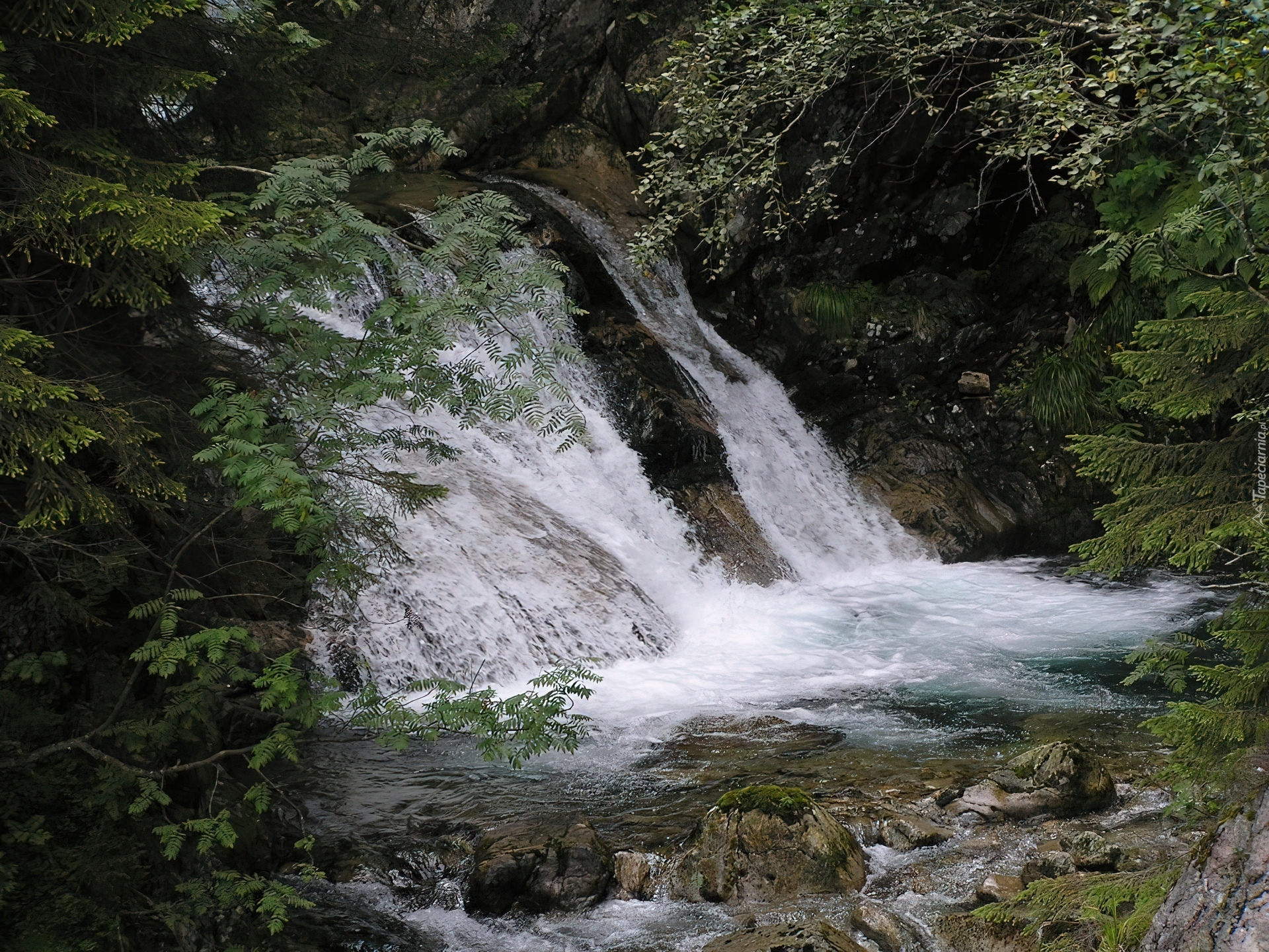 Edytor tapety: Górska, Rzeka, Wodospad