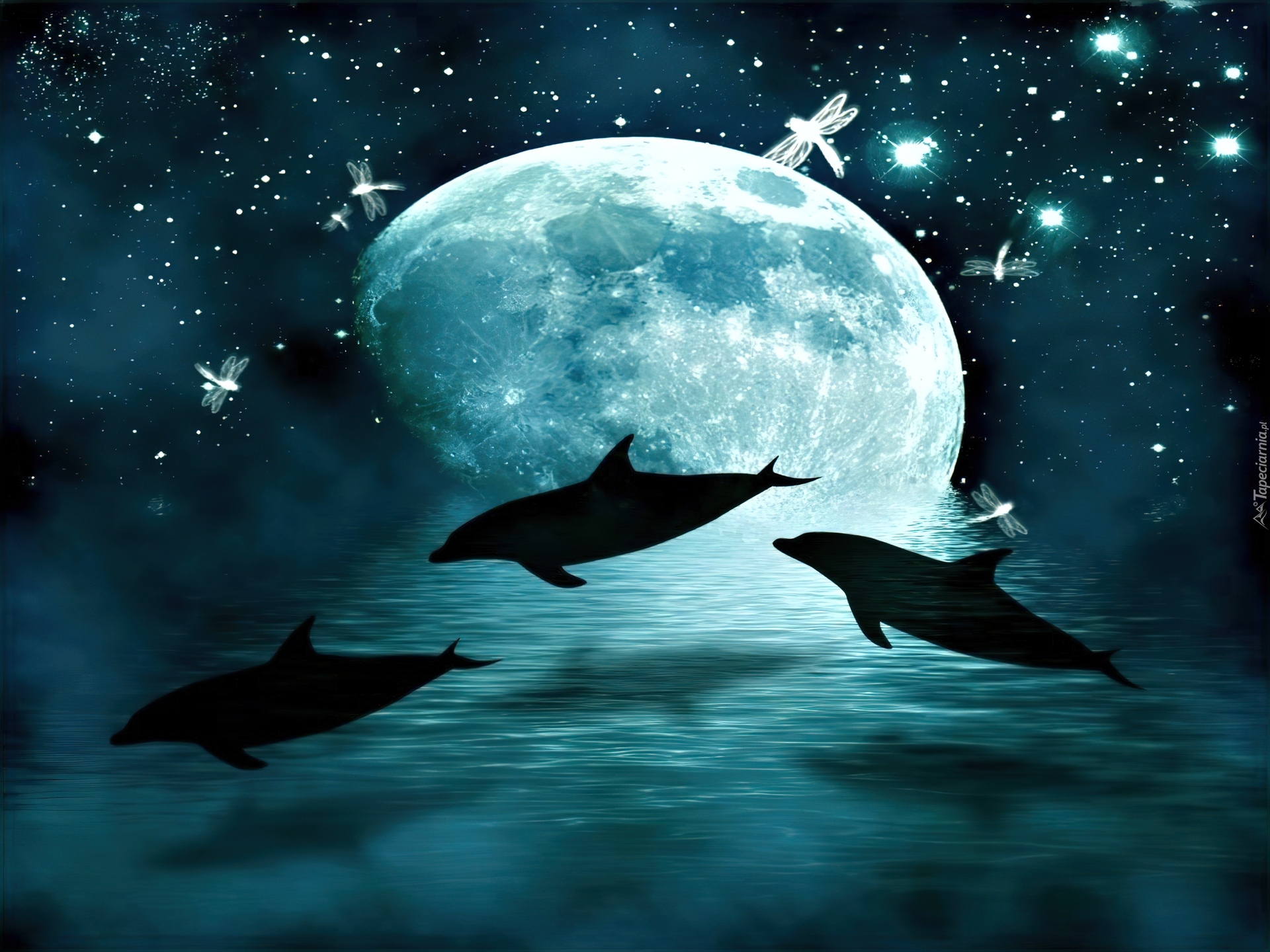 Edytor tapety: Trzy, Delfiny, Planeta, Fantasy