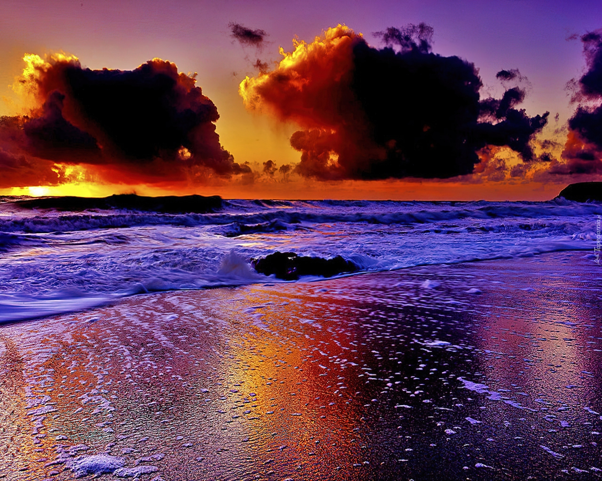 Edytor tapety: Chmury, Morze, Plaża, Zachód, Słońca