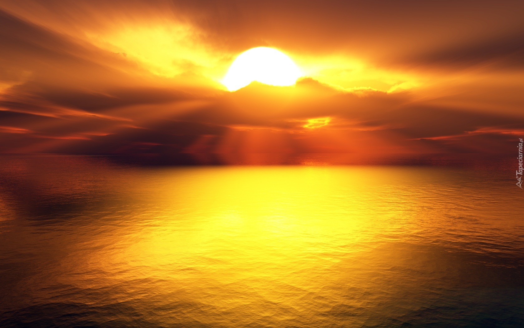Edytor tapety: Morze, Zachód, Słońca, Odblask