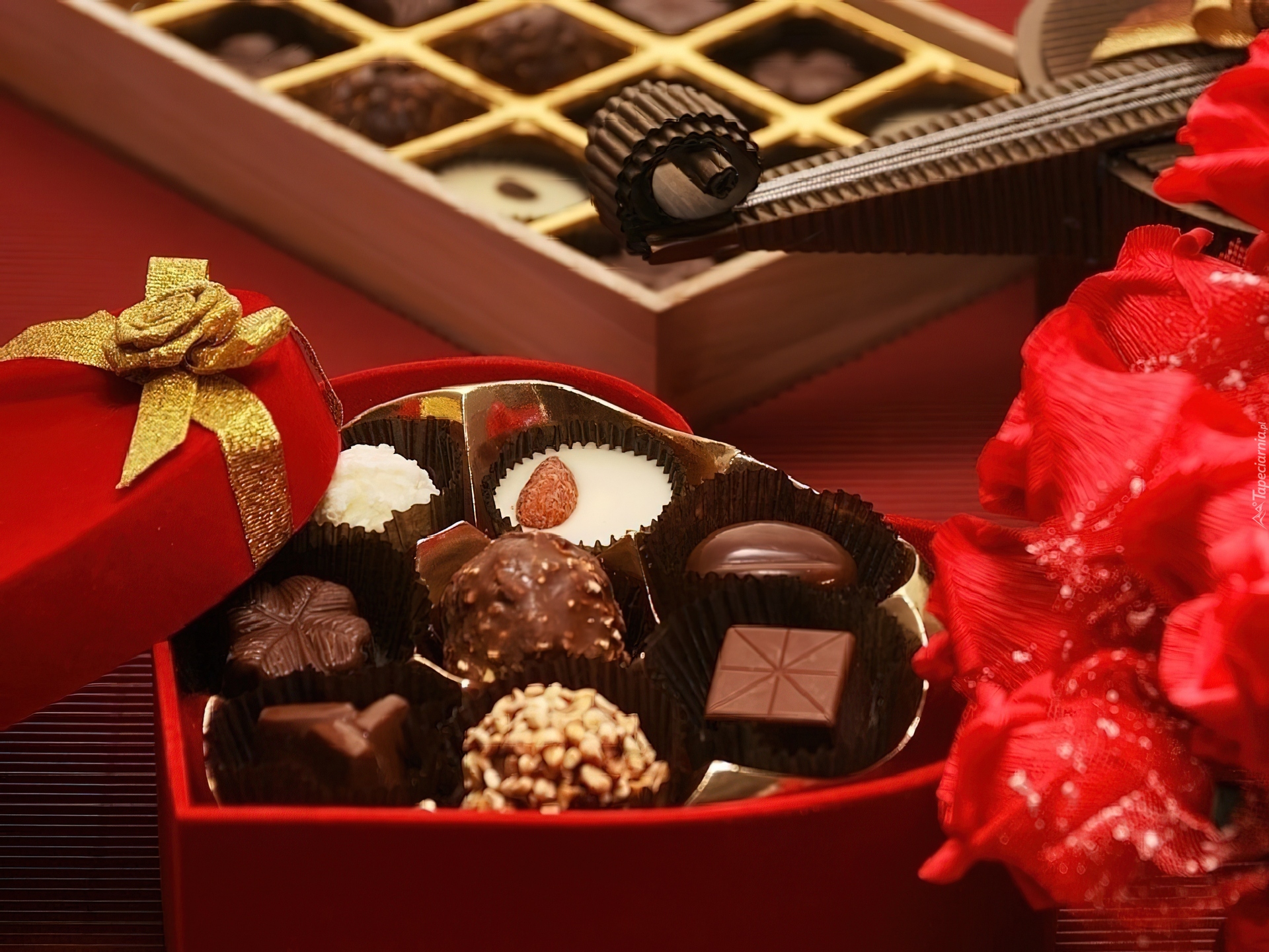 Edytor tapety: Pralinki, Bombonierka, Czerwone, Serduszko, Miłość