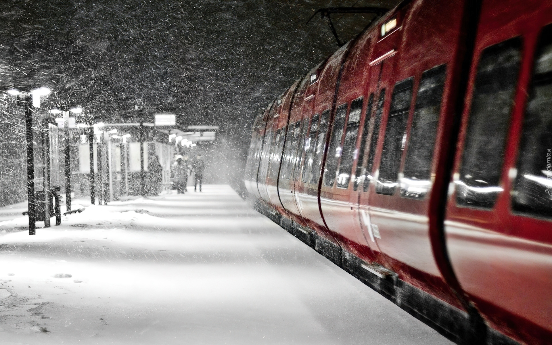 Edytor tapety: Dworzec, Peron, Pociąg, Śnieżyca
