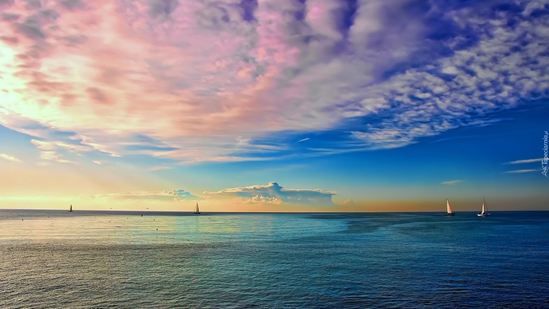 Edytor tapety: Chmury, Morze, Żaglówki