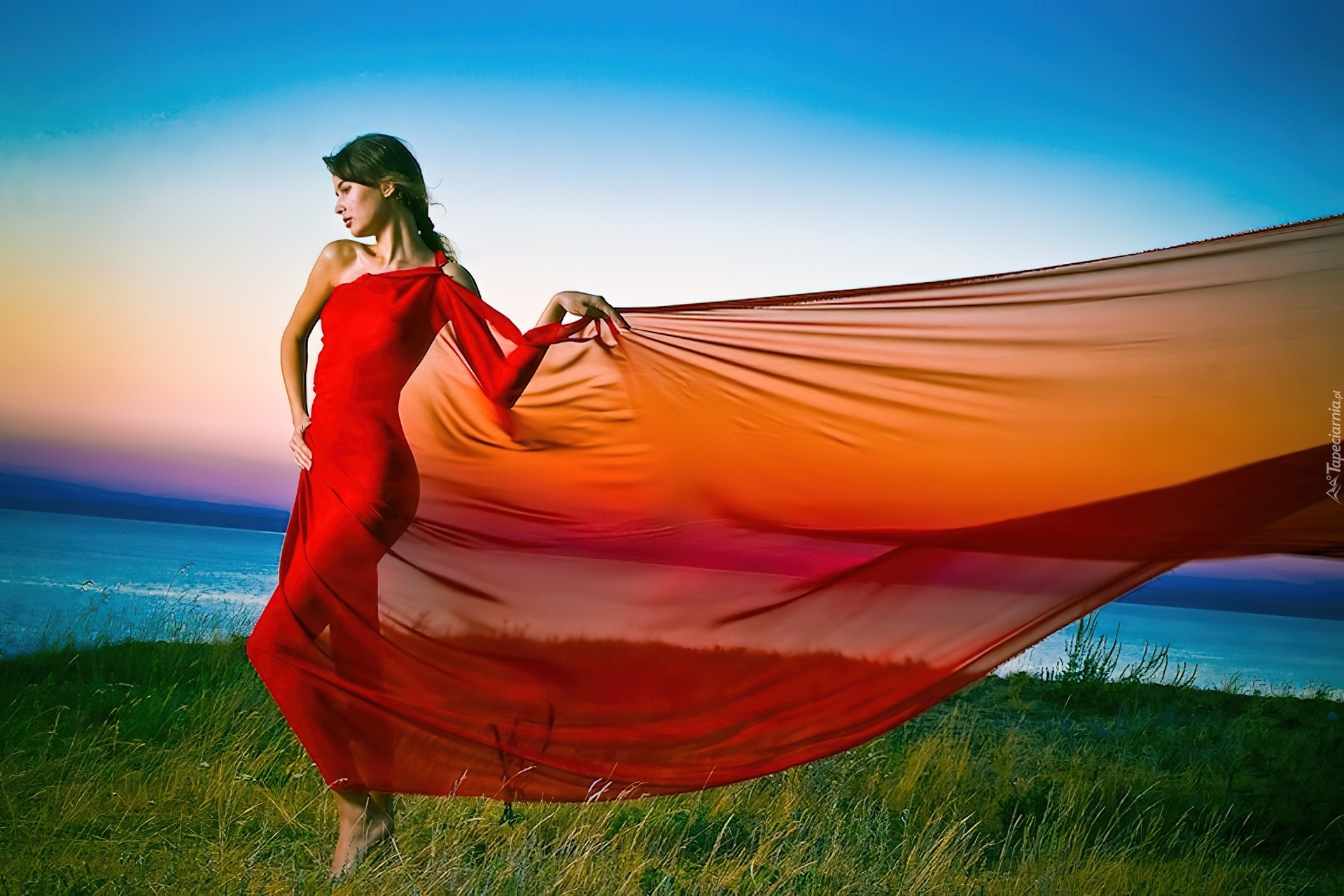 Edytor tapety: Kobieta, Czerwona, Suknia