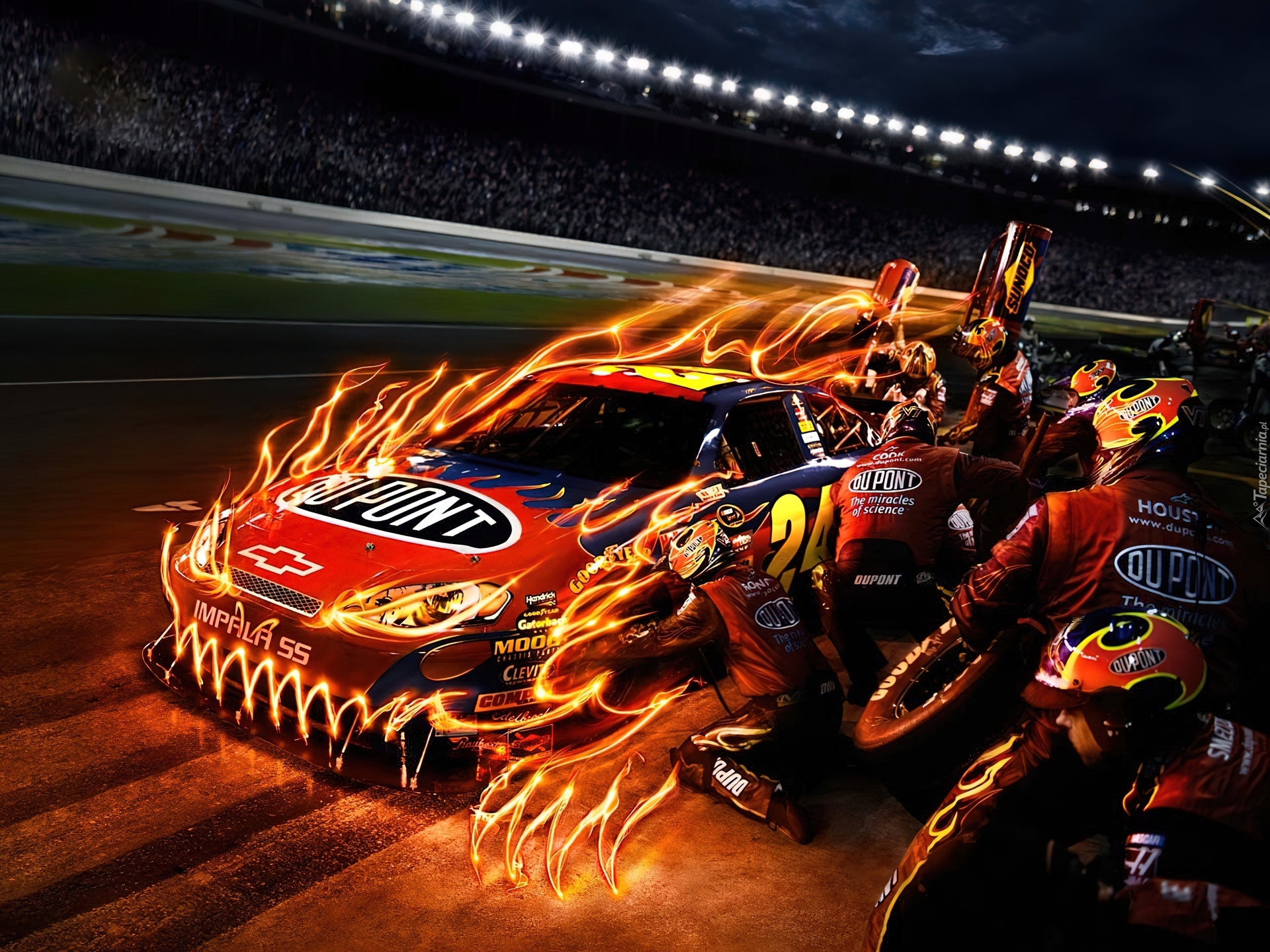 Edytor tapety: Czerwony, Samochód, Płomienie