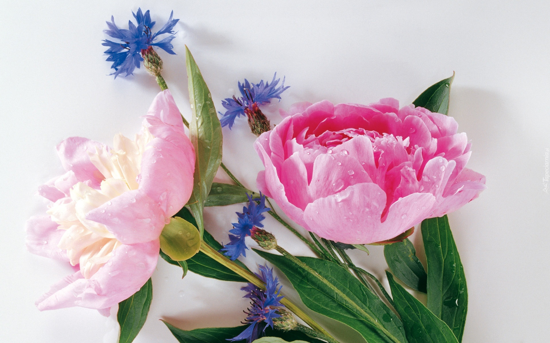 Edytor tapety: Bukiet, Kwiatów, Niebieskie, Chabry, Piwonie