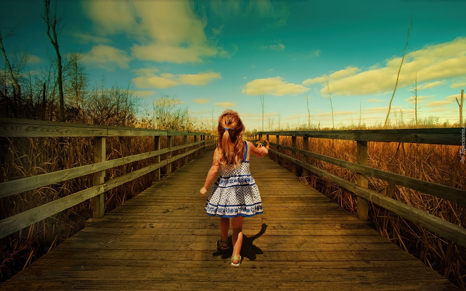 Edytor tapety: Dziewczynka, Drewniany, Mostek