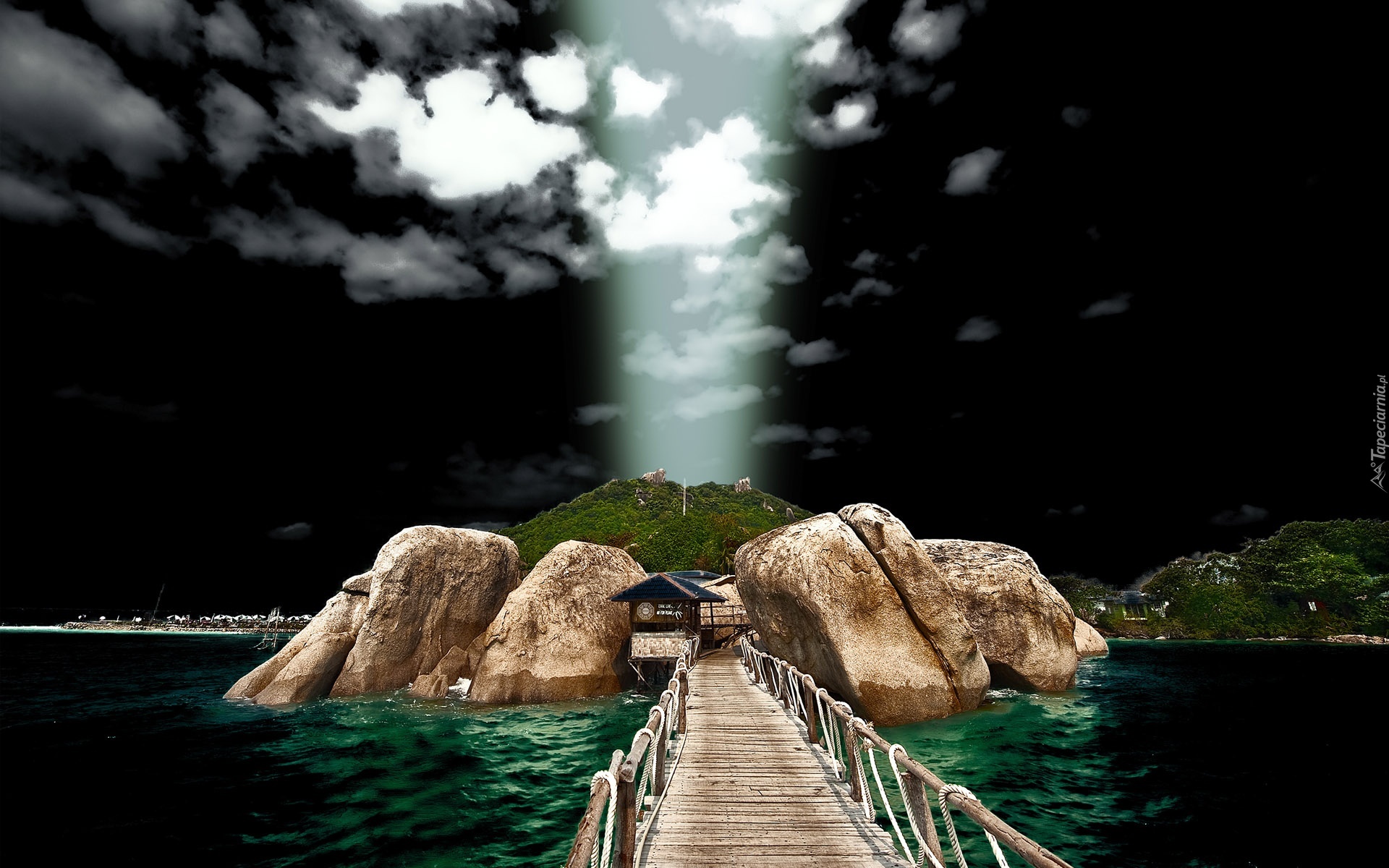 Edytor tapety: Skały, Mostek, Światło, Ciemne, Chmury
