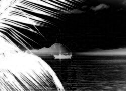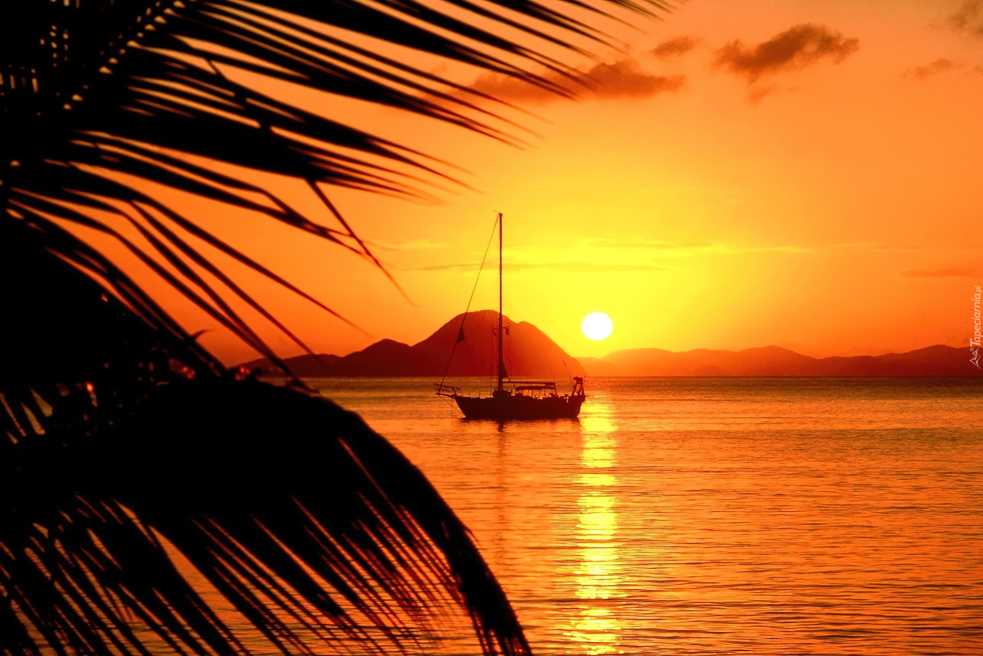 Edytor tapety: Żaglówka, Zachód, Słońca, Palma