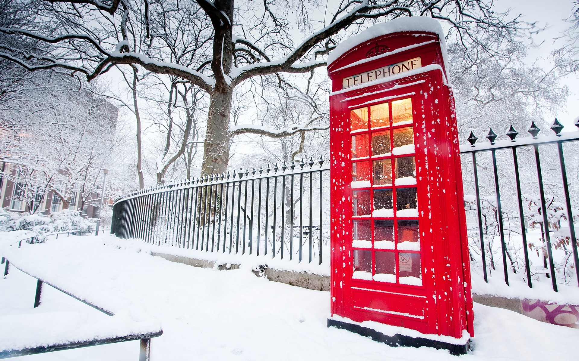 Edytor tapety: Zima, Budka, Telefoniczna, Ogrodzenie
