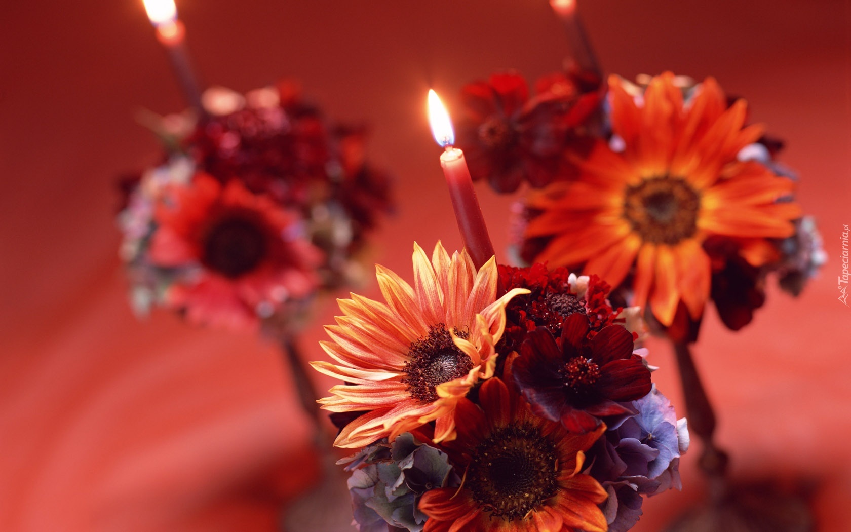 Edytor tapety: Bukiet, Kwiatów, Świeczki