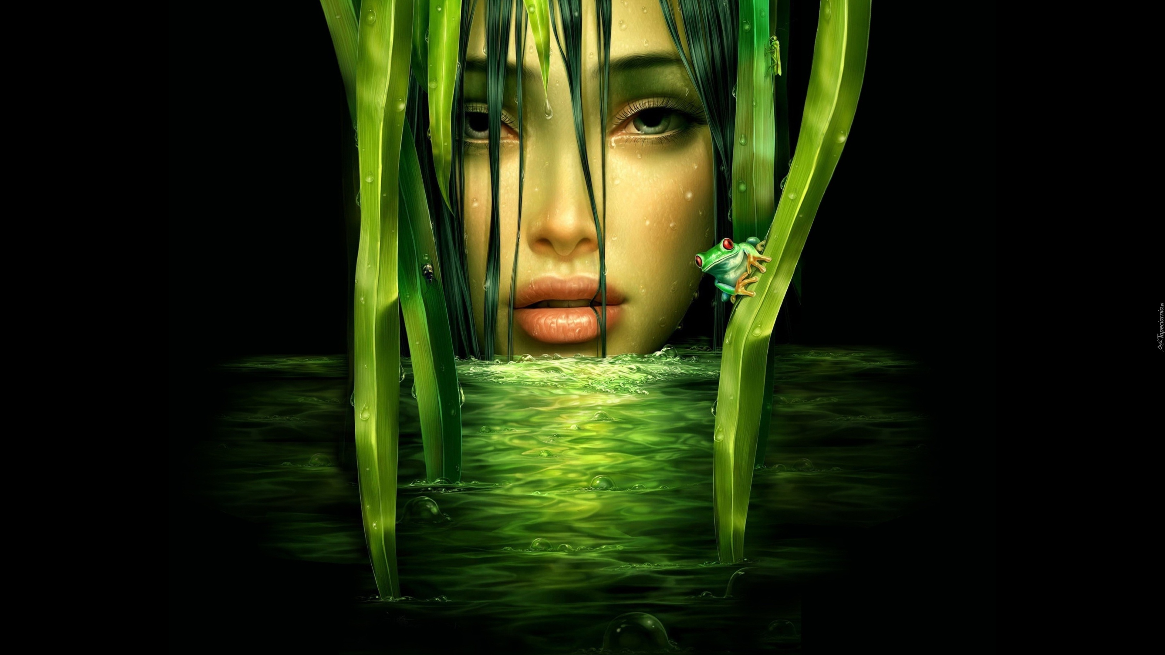Edytor tapety: Zielone, Włosy, Kobieta