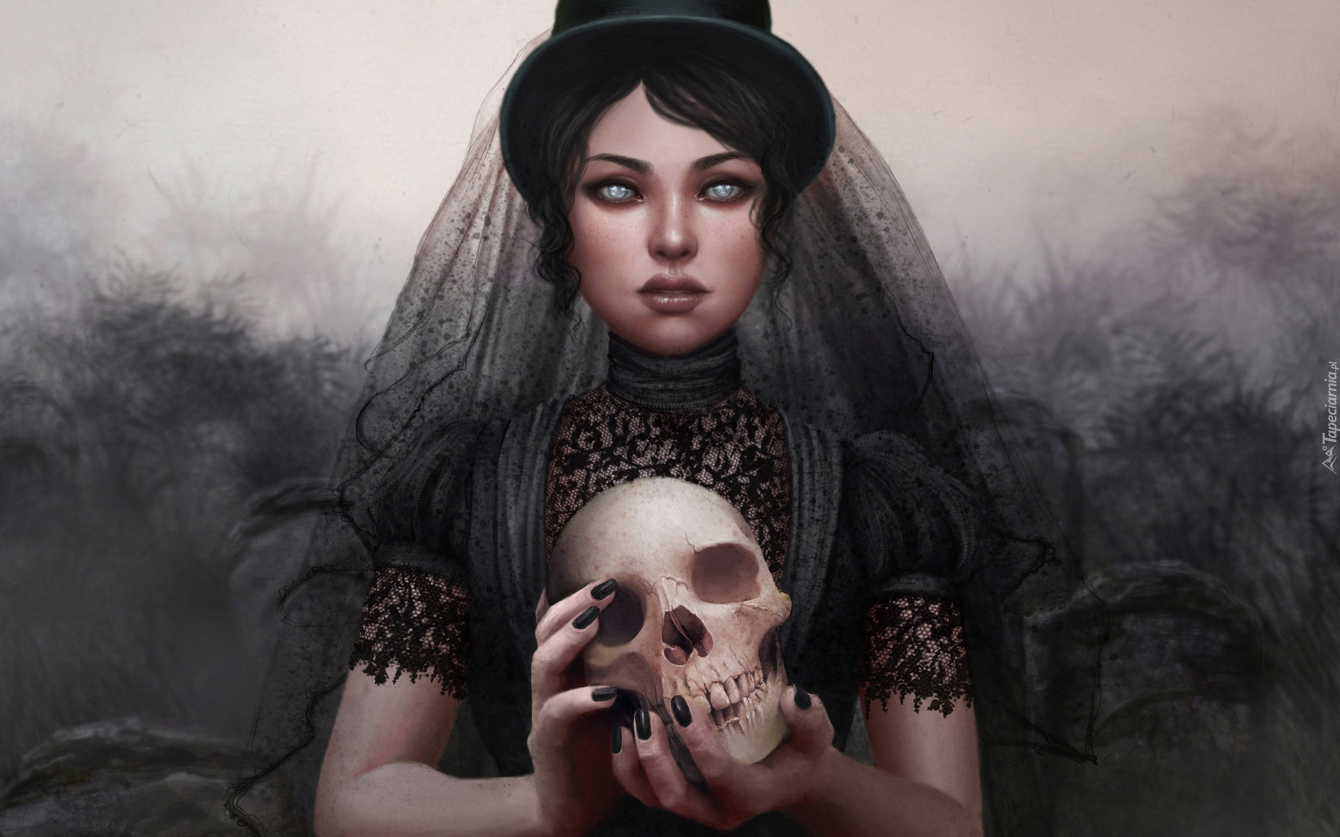 Edytor tapety: Kobieta, W, Żałobie, Trupia, Czaszka