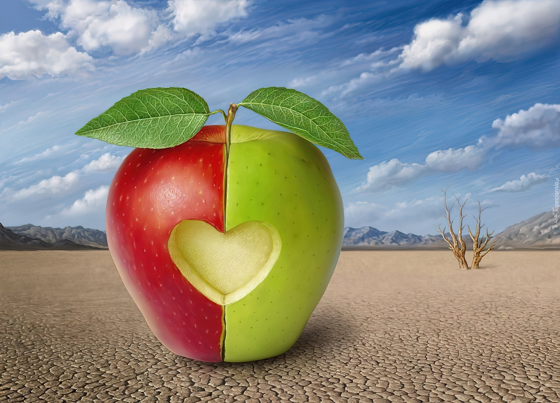 Edytor tapety: Zielono, Czerwone, Jabłko, Serce