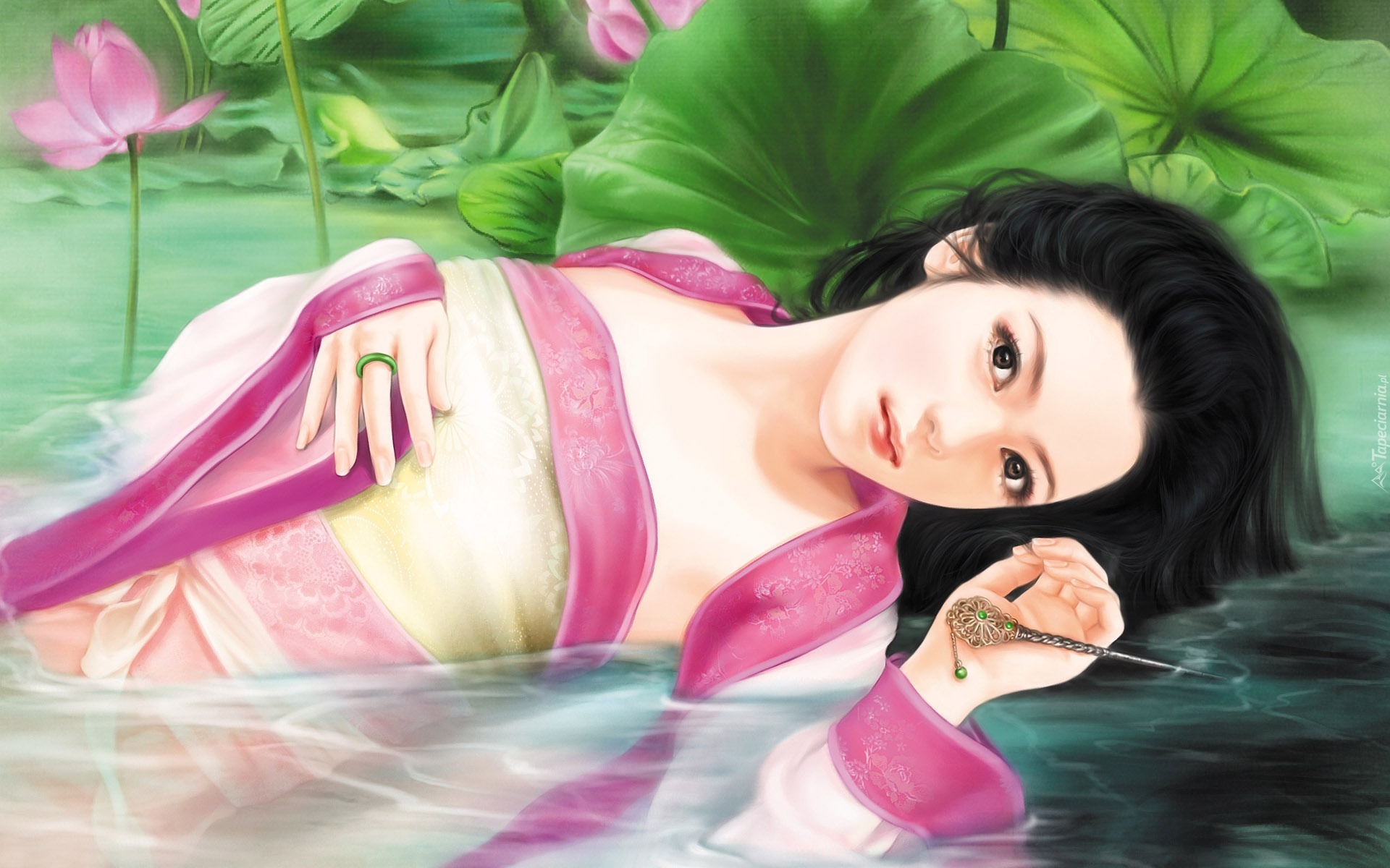 Edytor tapety: Japonka, Lilie, Woda