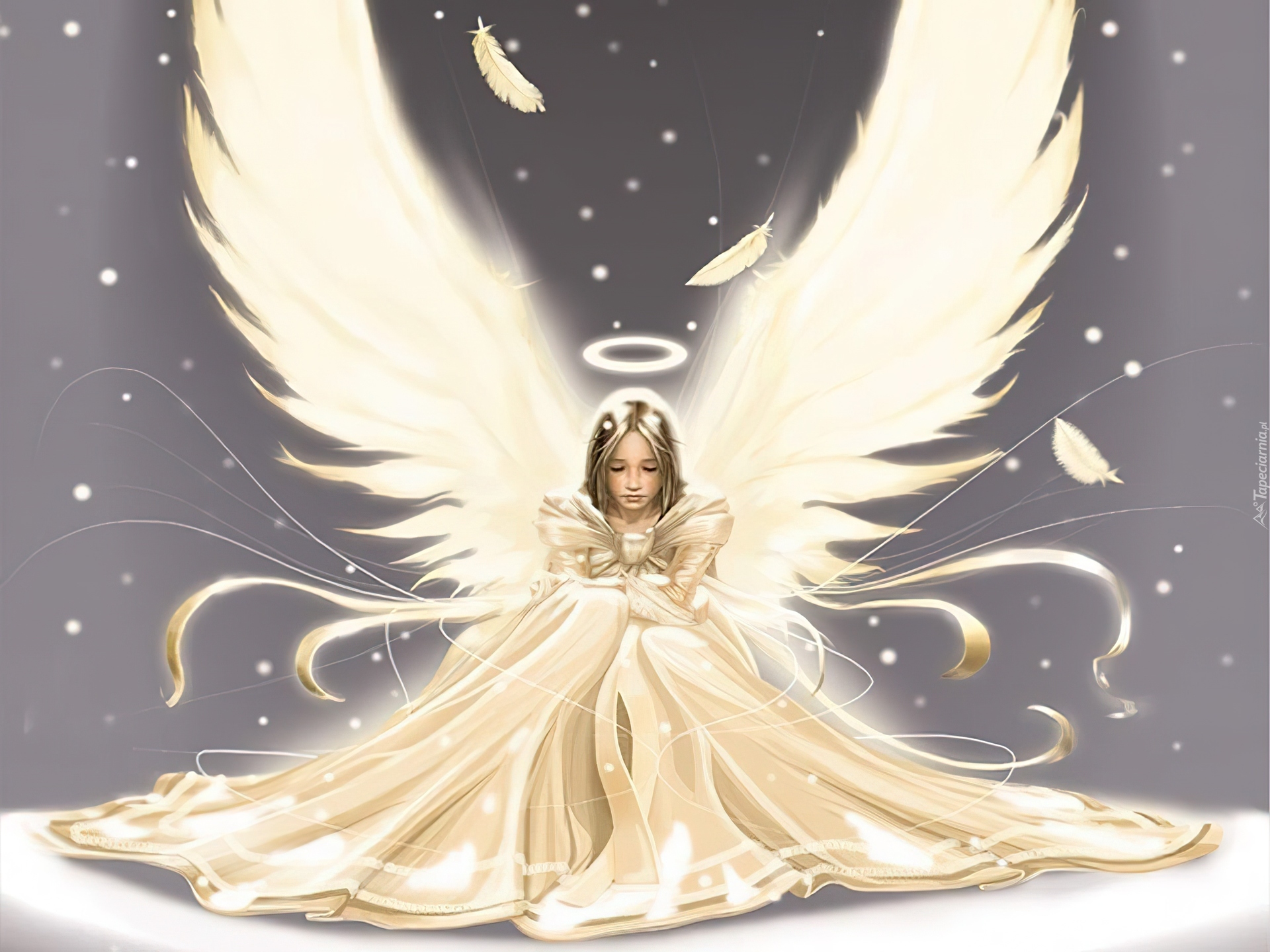 Edytor tapety: Dziewczynka, Anioł, Biała, Sukienka