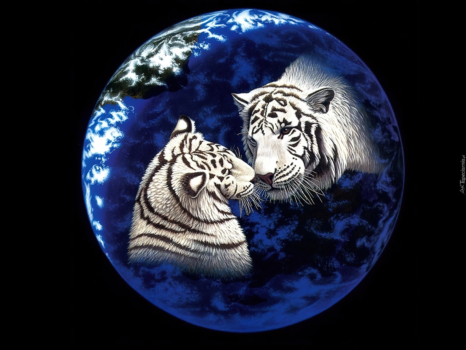 Edytor tapety: Dwa, Tygrysy, Kula, Ziemska