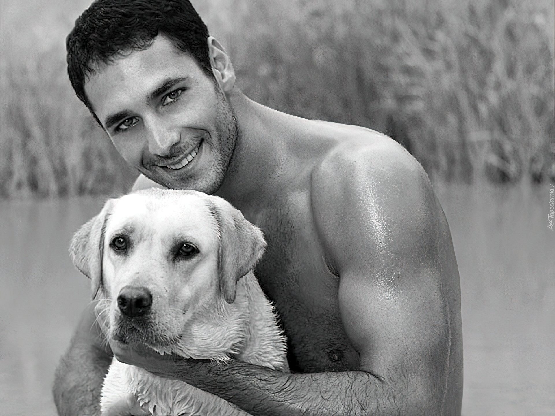Edytor tapety: Labrador Retriever, Przystojny, Mężczyzna