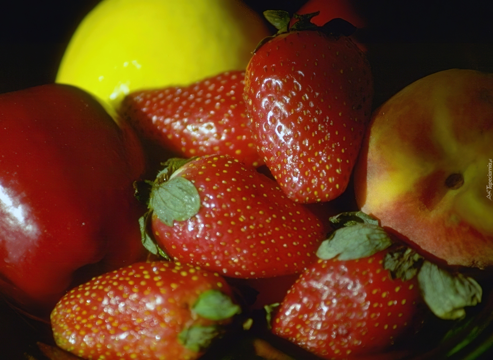 Edytor tapety: Truskawki, Czerwone, Jabłko, Brzoskwinia