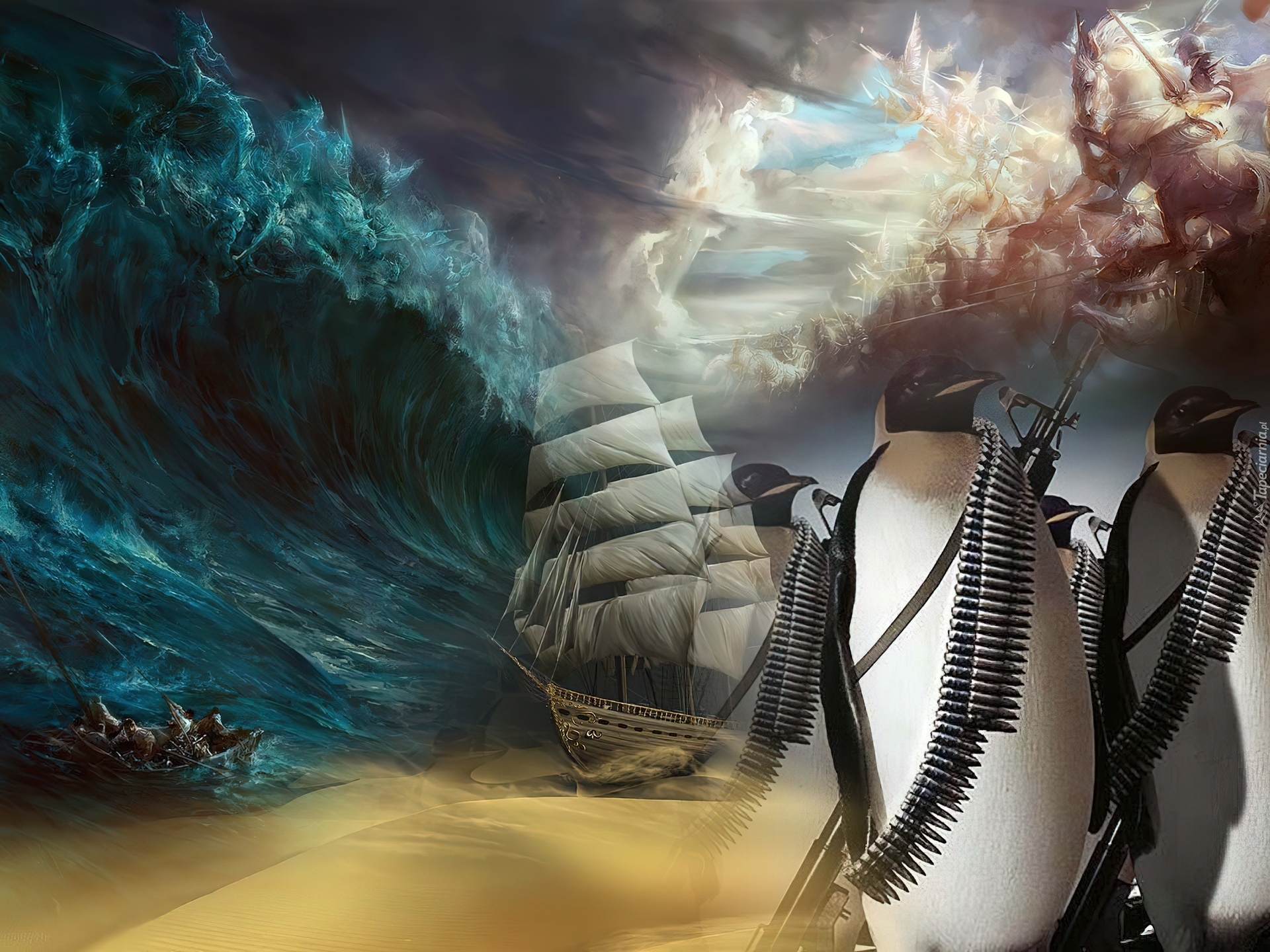 Edytor tapety: Armia, Pingwinów, Statek, Fala