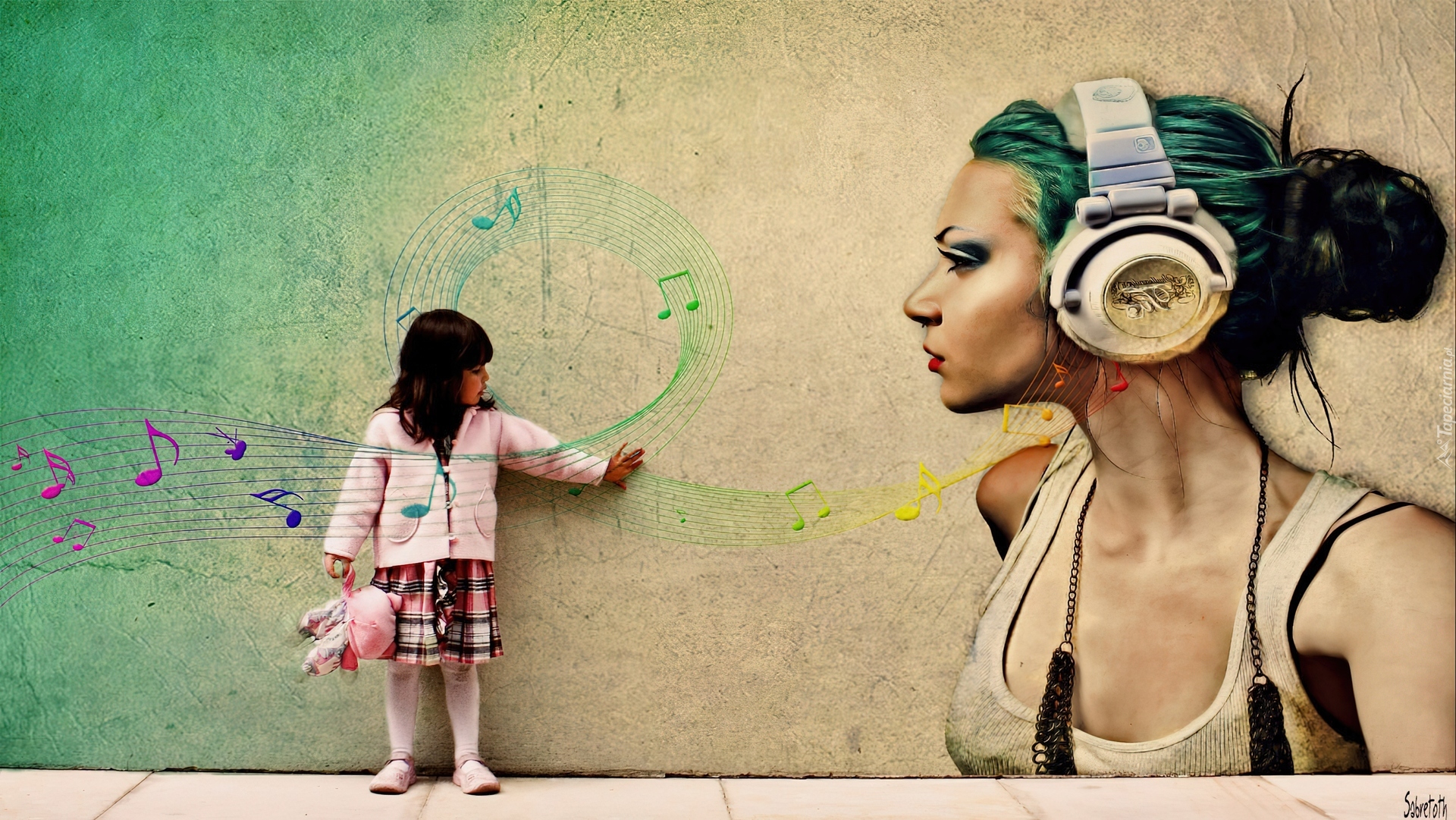 Edytor tapety: Muzyka, Dziewczynka, Kobieta