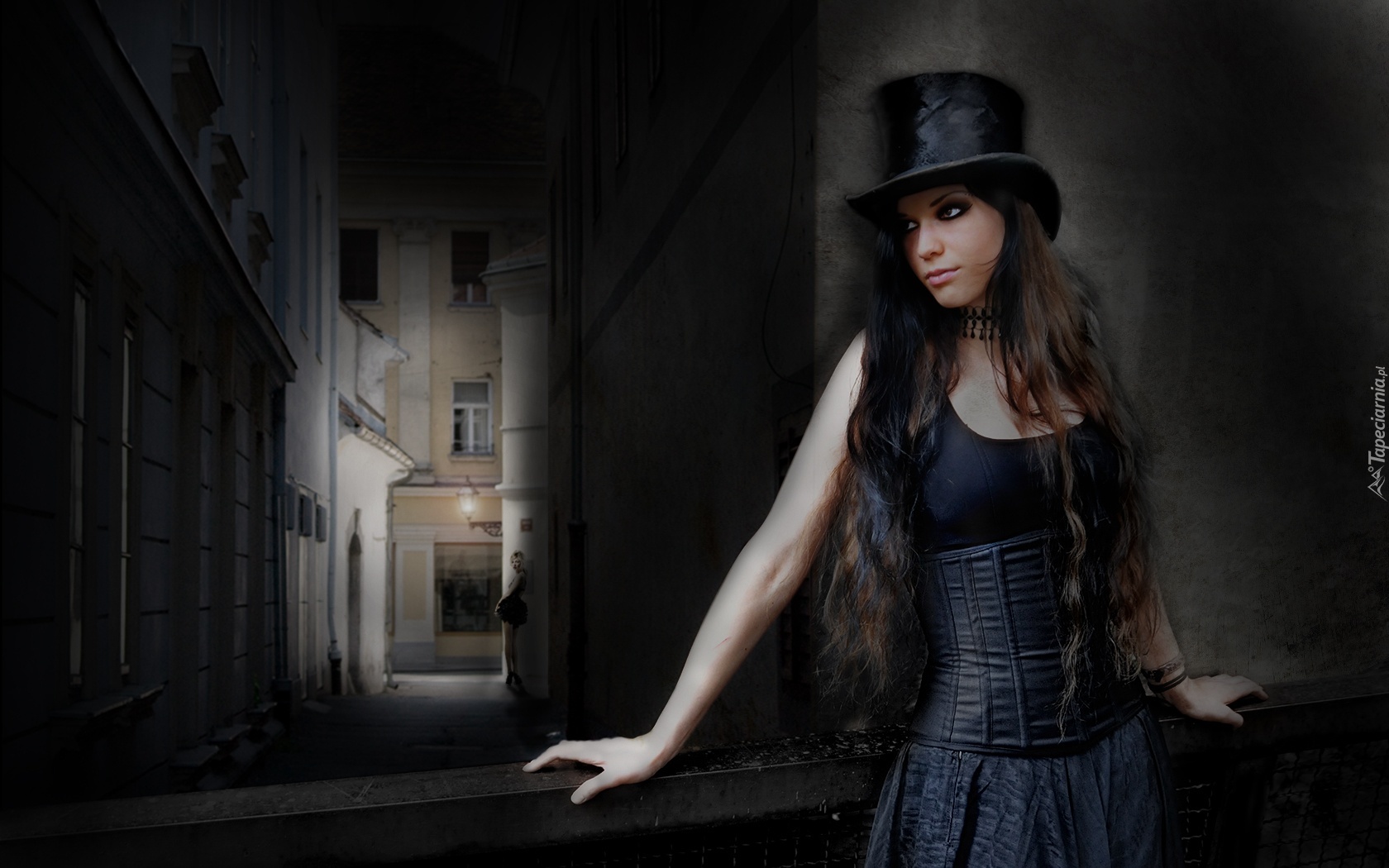 Edytor tapety: Kobieta, Kapelusz, Miasto