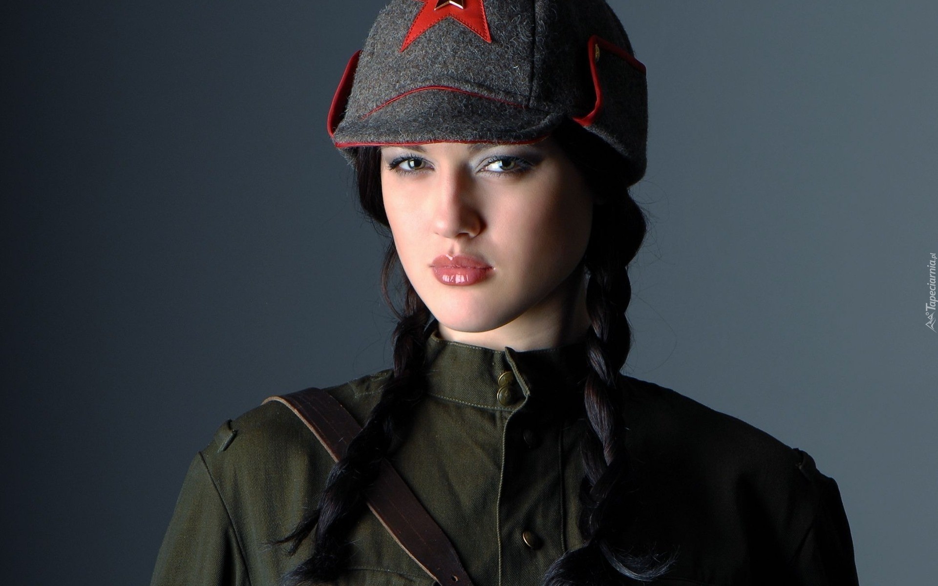 Edytor tapety: Kobieta, Mundur, Warkocze