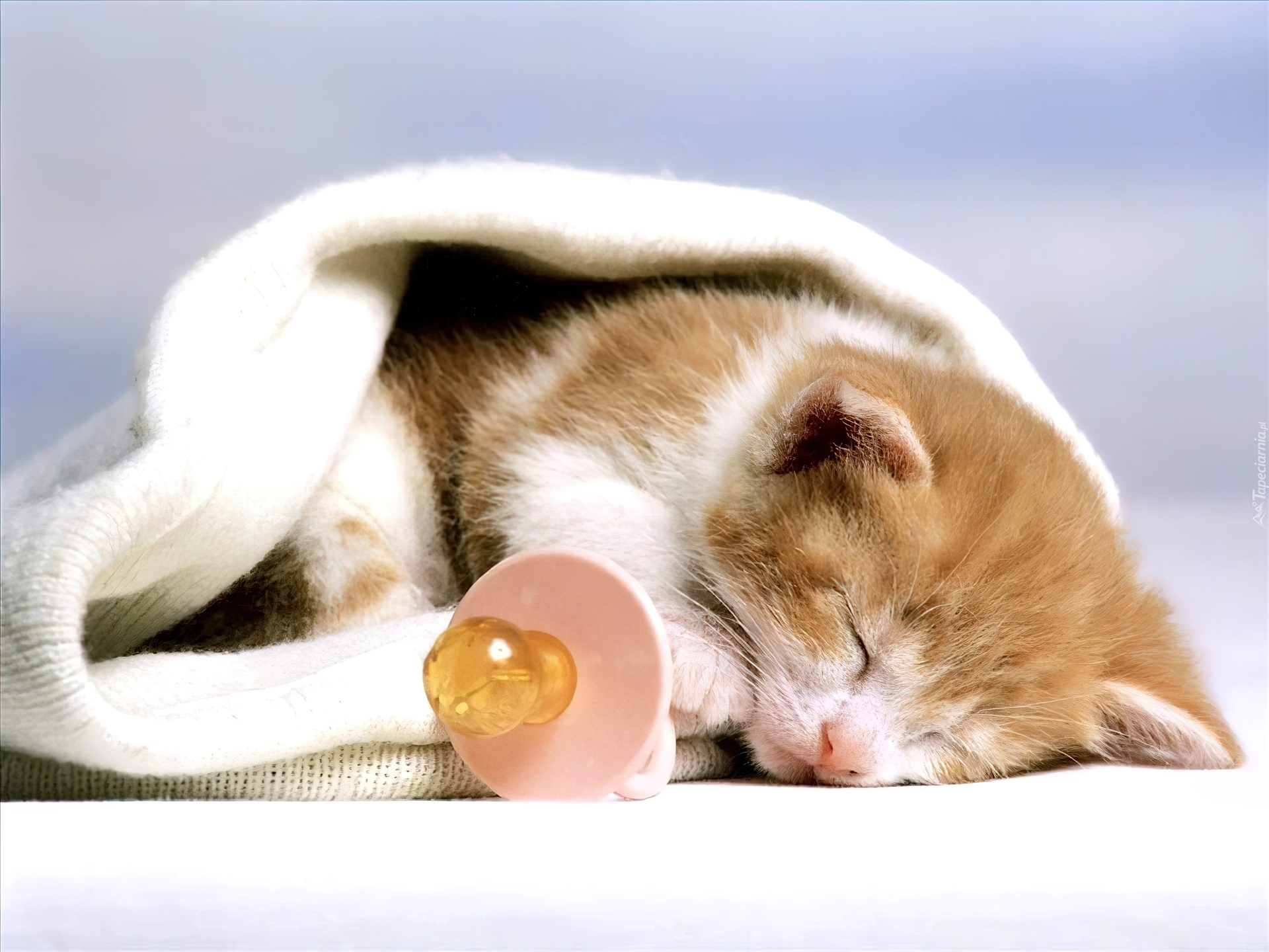 Edytor tapety: Kotek, Smoczek, Pled