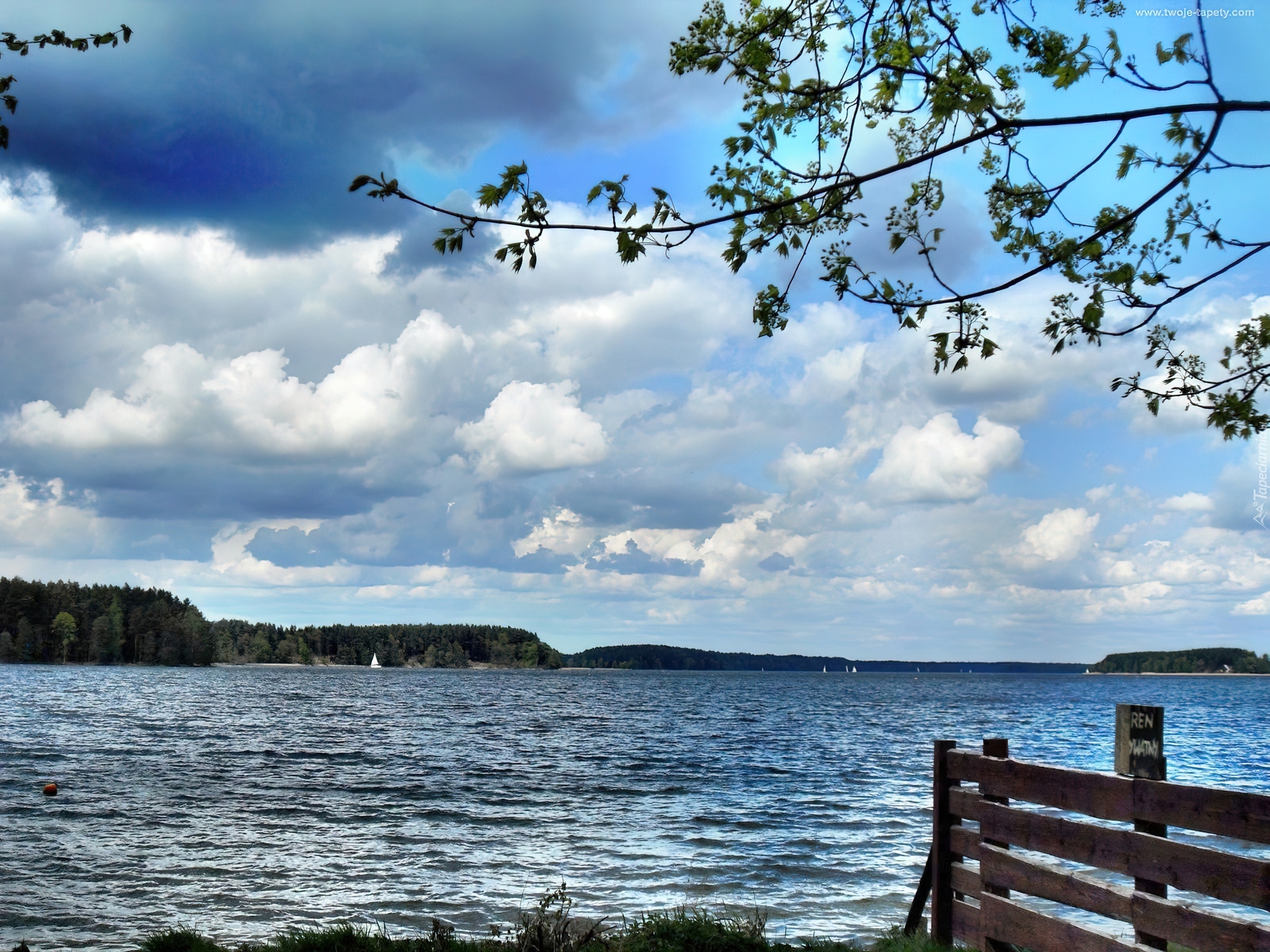 Edytor tapety: Niebieska, Tafla, Jeziora, Gałęzie, Drzewa