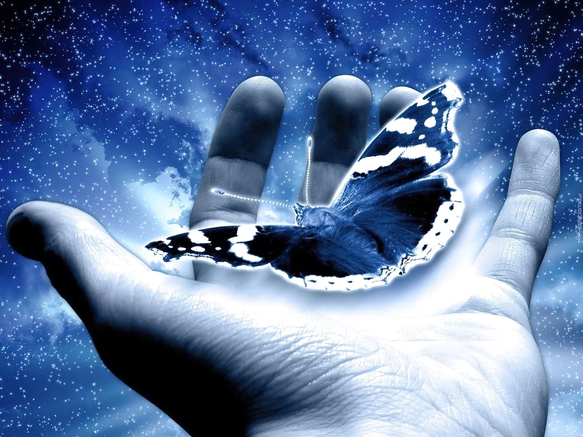 Edytor tapety: Dłoń, Mężczyzny, Motyl
