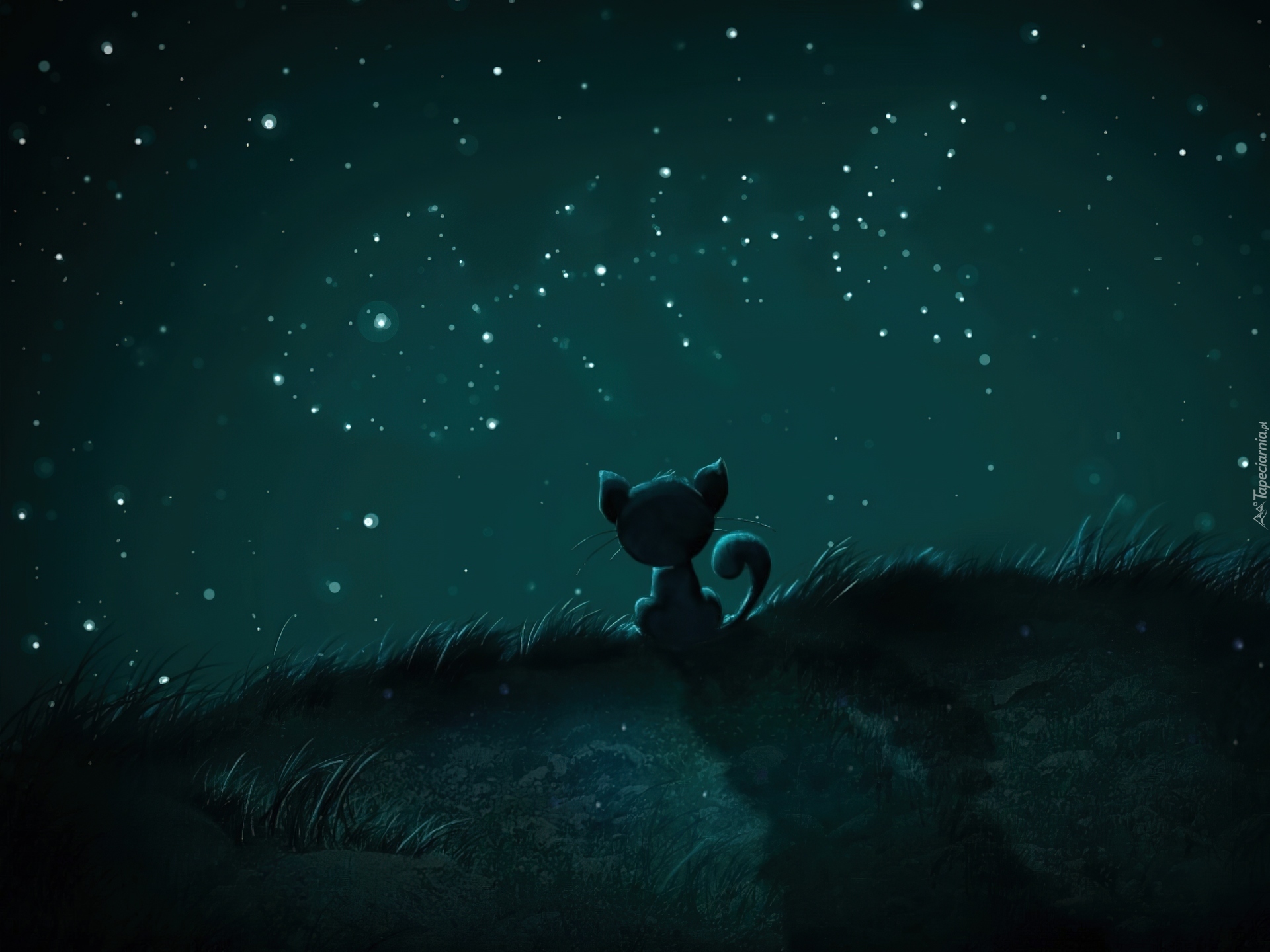 Edytor tapety: Kot, Gwiazdy, Ryba