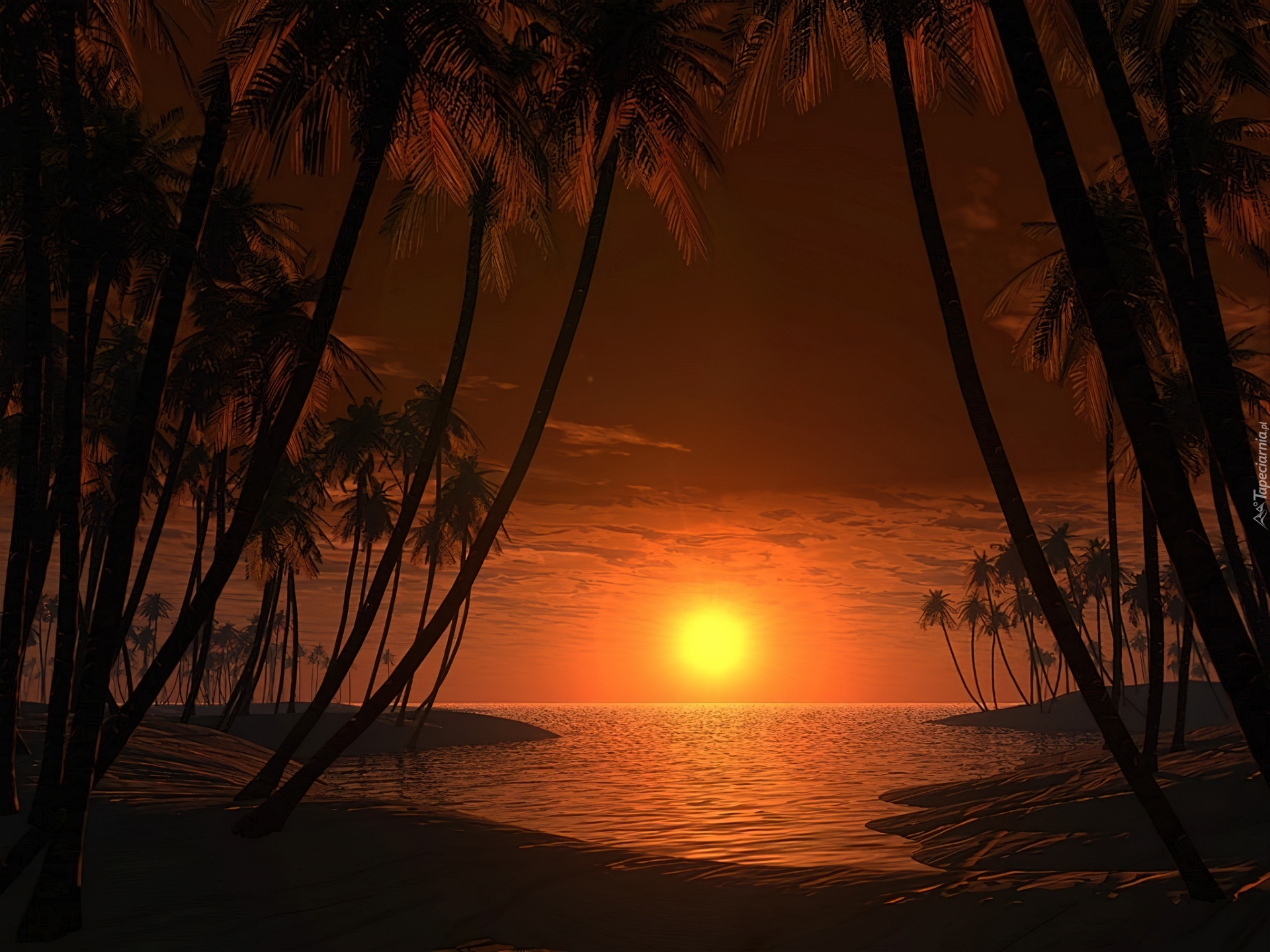 Edytor tapety: Palmy, Zachód, Słońca, Woda, Tropiki
