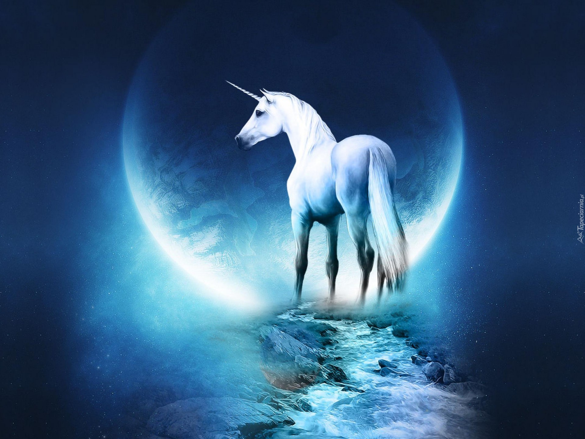 Edytor tapety: Jednorożec, Droga, Księżyc