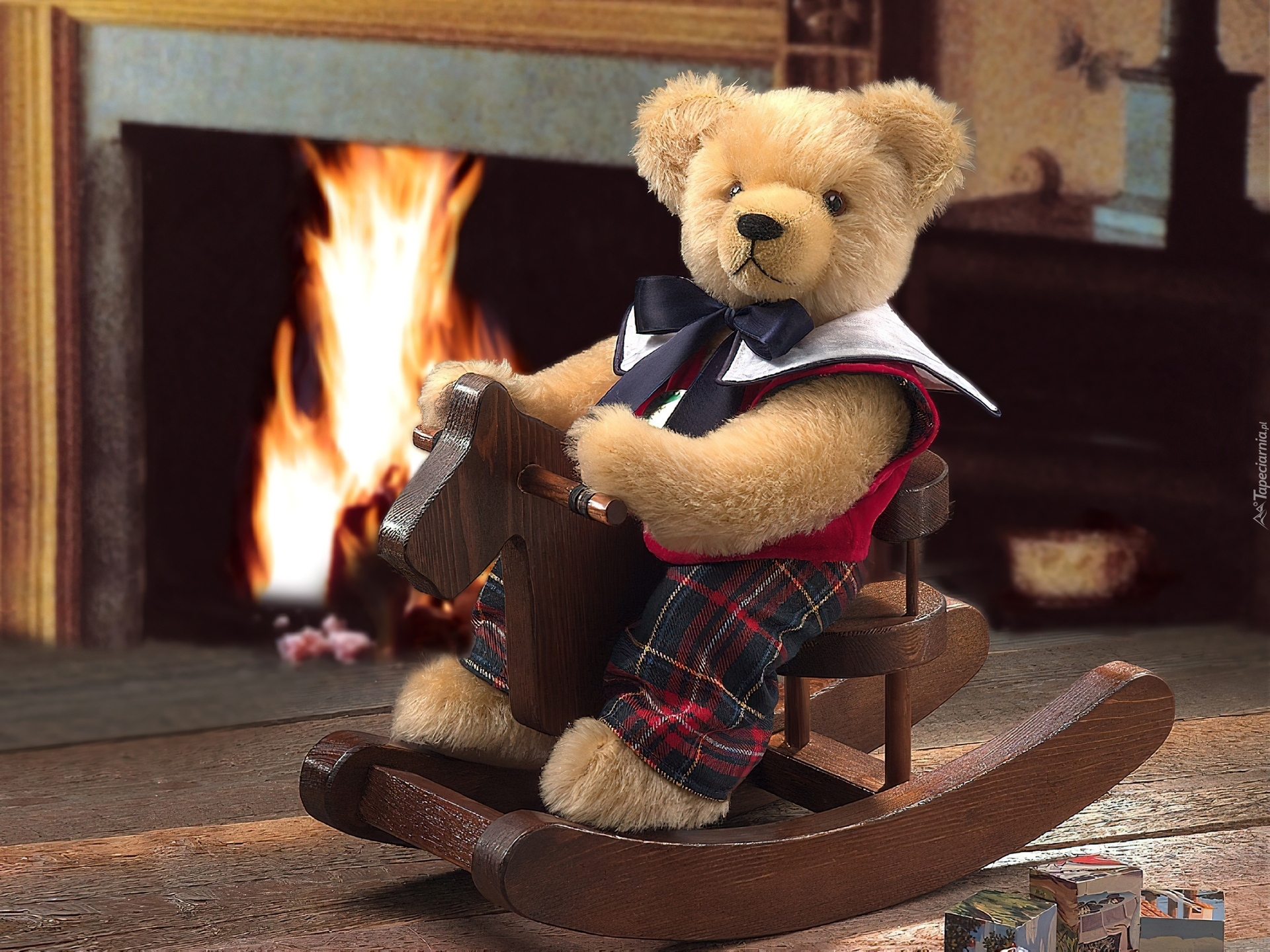 Edytor tapety: Zabawka, Miś, Konik, Kominek