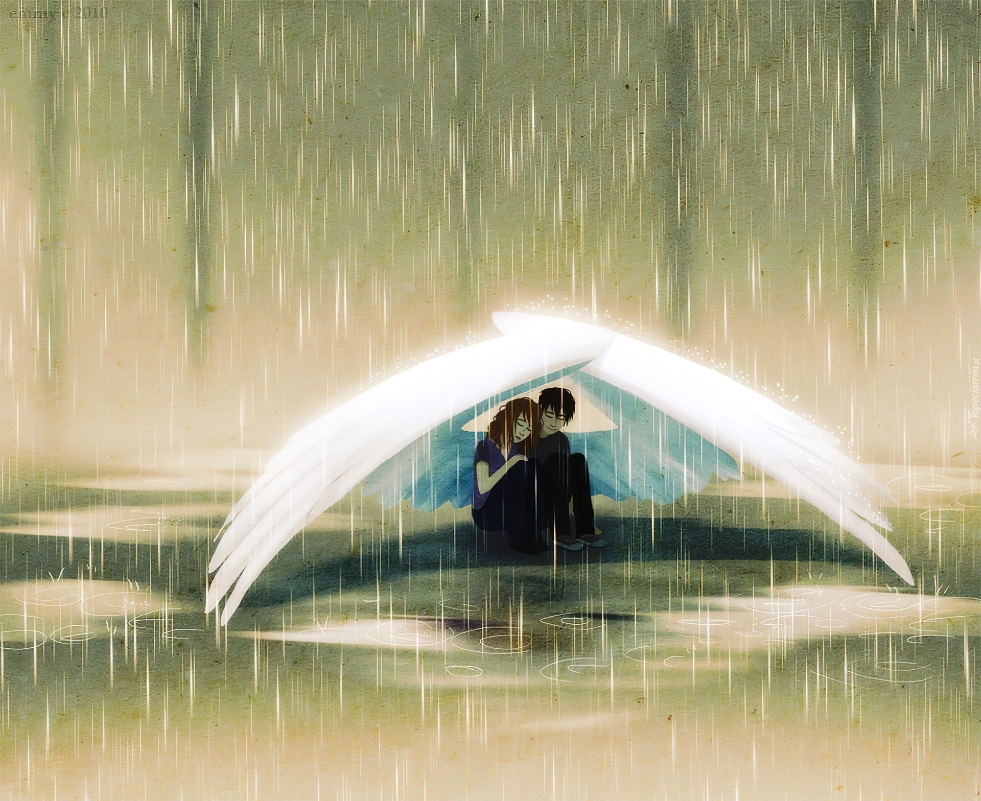 Edytor tapety: Anioł, Dziewczyna, Deszcz, Skrzydła