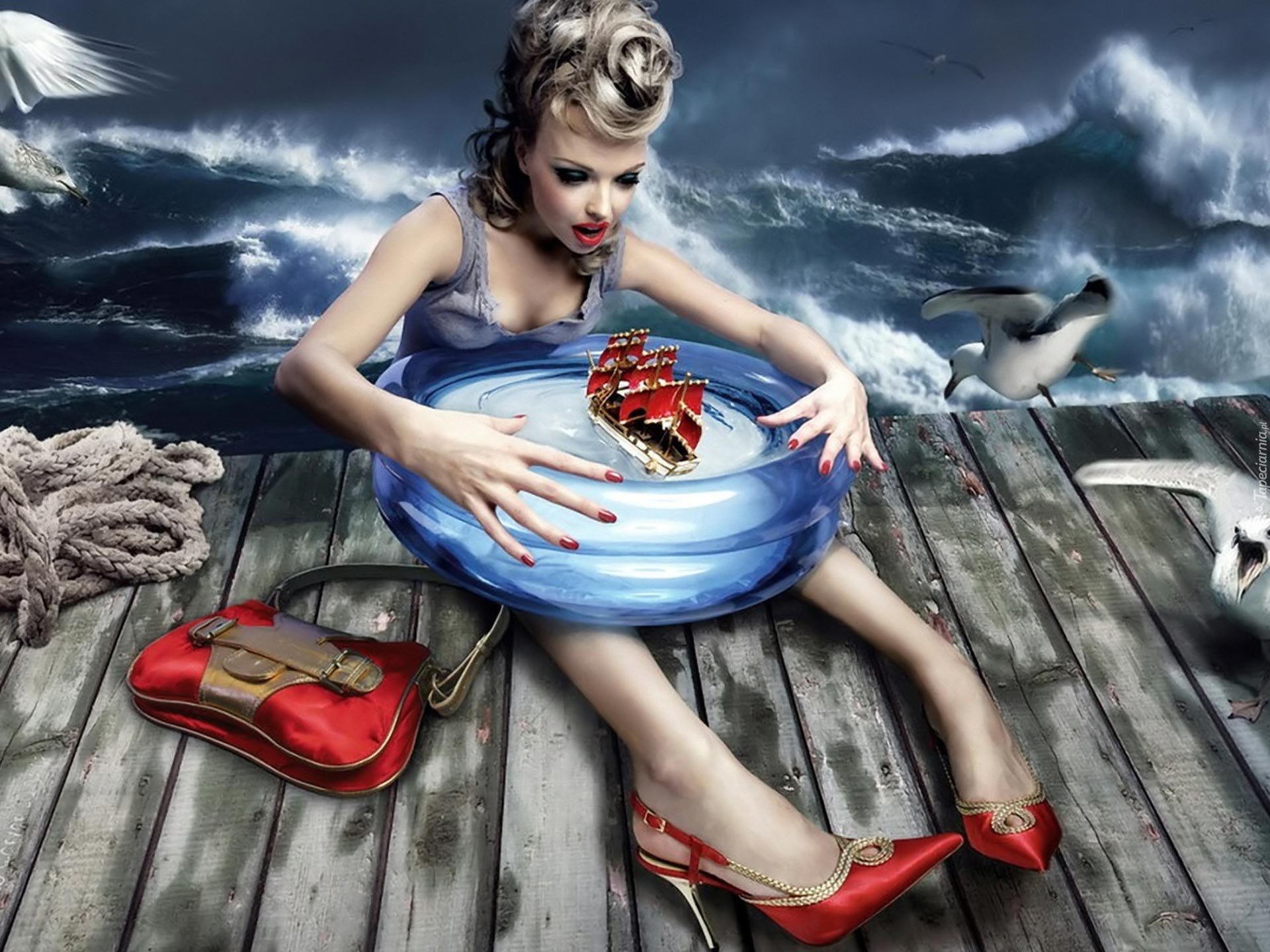 Edytor tapety: Kobieta, Pomost, Basenik, Sztorm