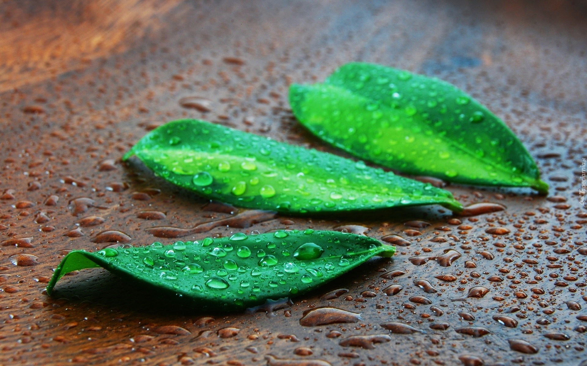 Edytor tapety: Zielone, Liście, Krople, Wody