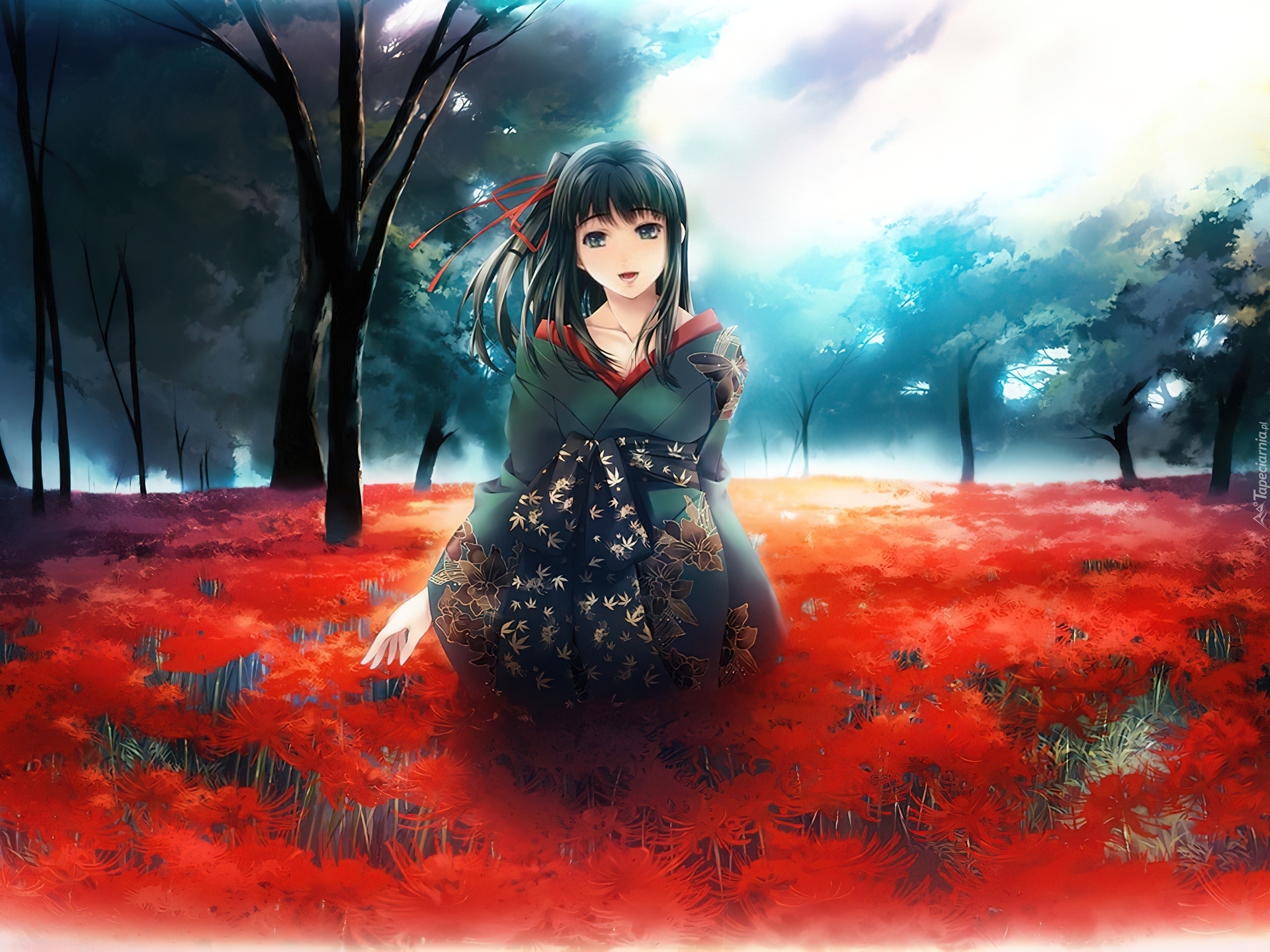 Edytor tapety: Dziewczyna, Łąka, Kwiaty