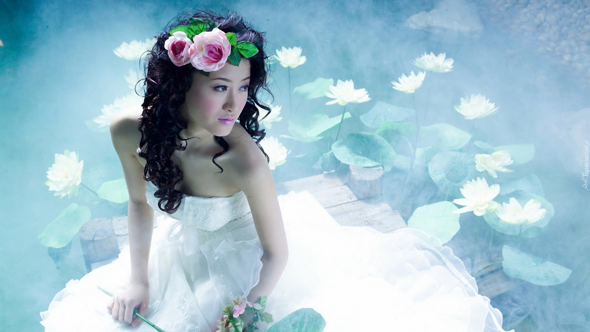 Edytor tapety: Kobieta, Suknia, Kwiaty