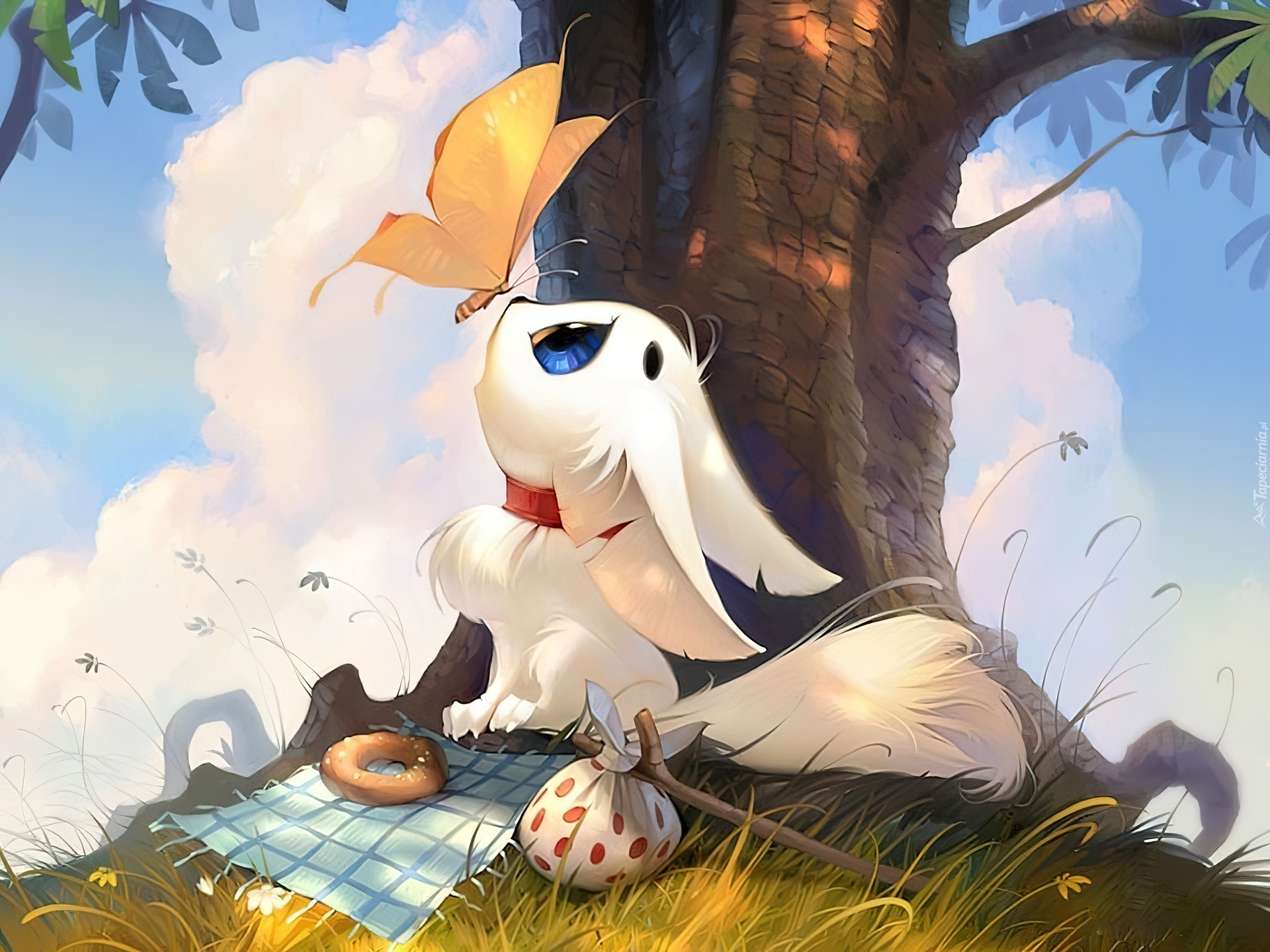 Edytor tapety: Piesek, Piknik, Motyl