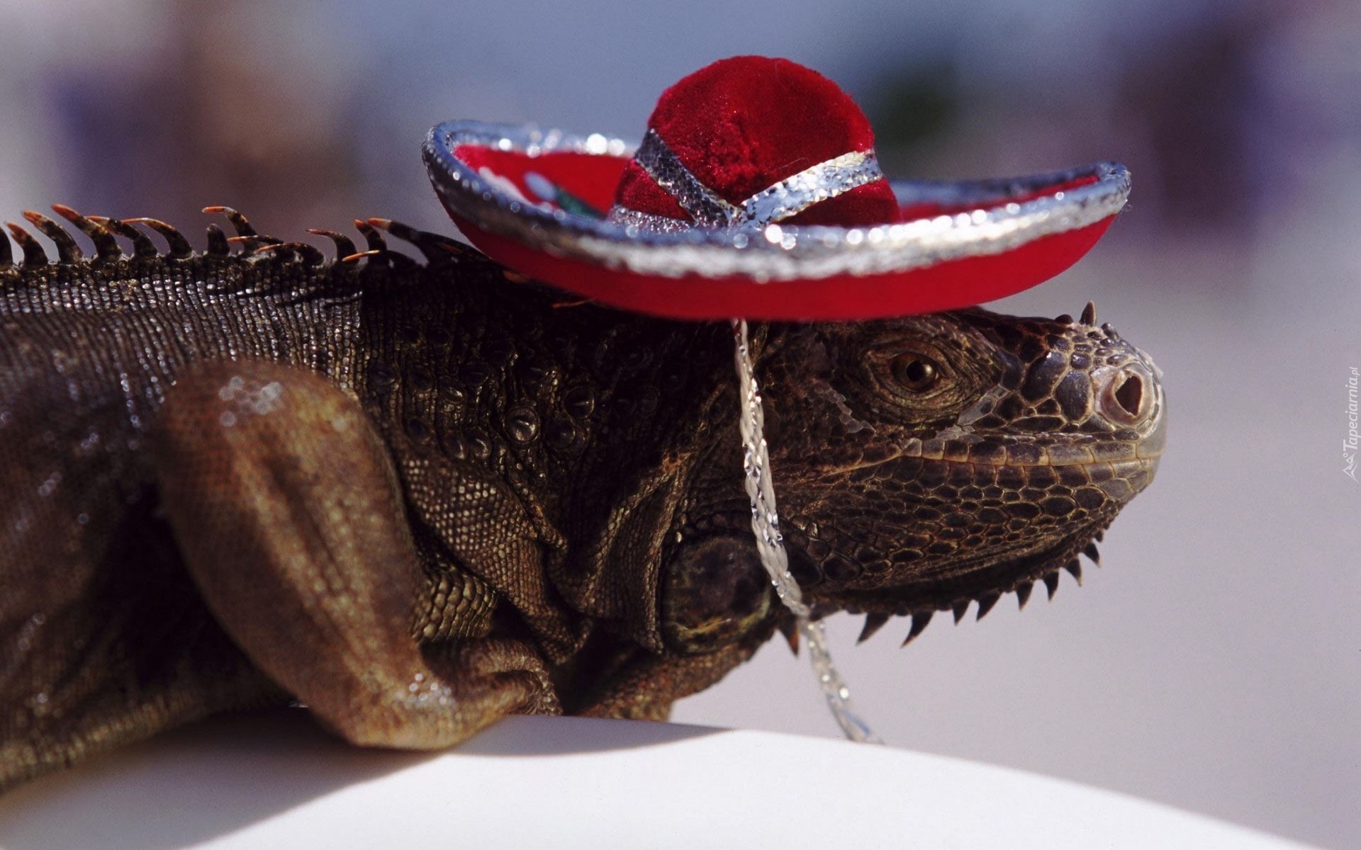 Edytor tapety: Duża, Jaszczurka, Kapelusz, Maskarada