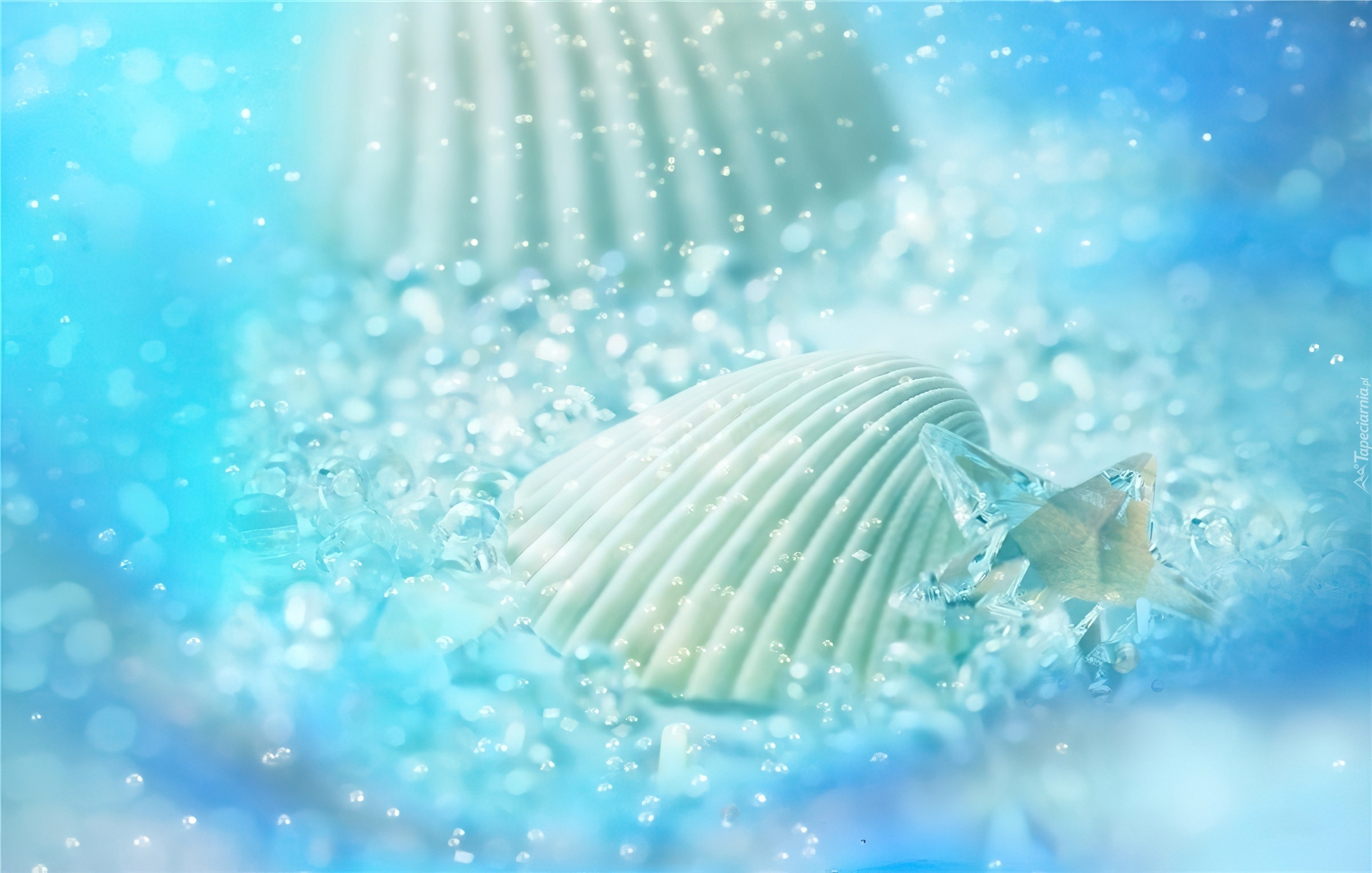 Edytor tapety: Muszle, Niebieskie, Kamyczki